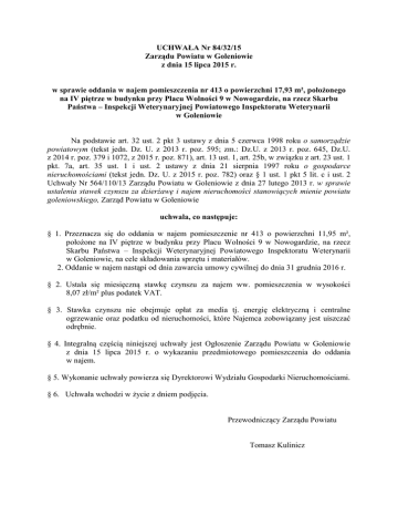 UCHWAŁA Nr 84/32/15 w sprawie oddania w najem pomieszczenia