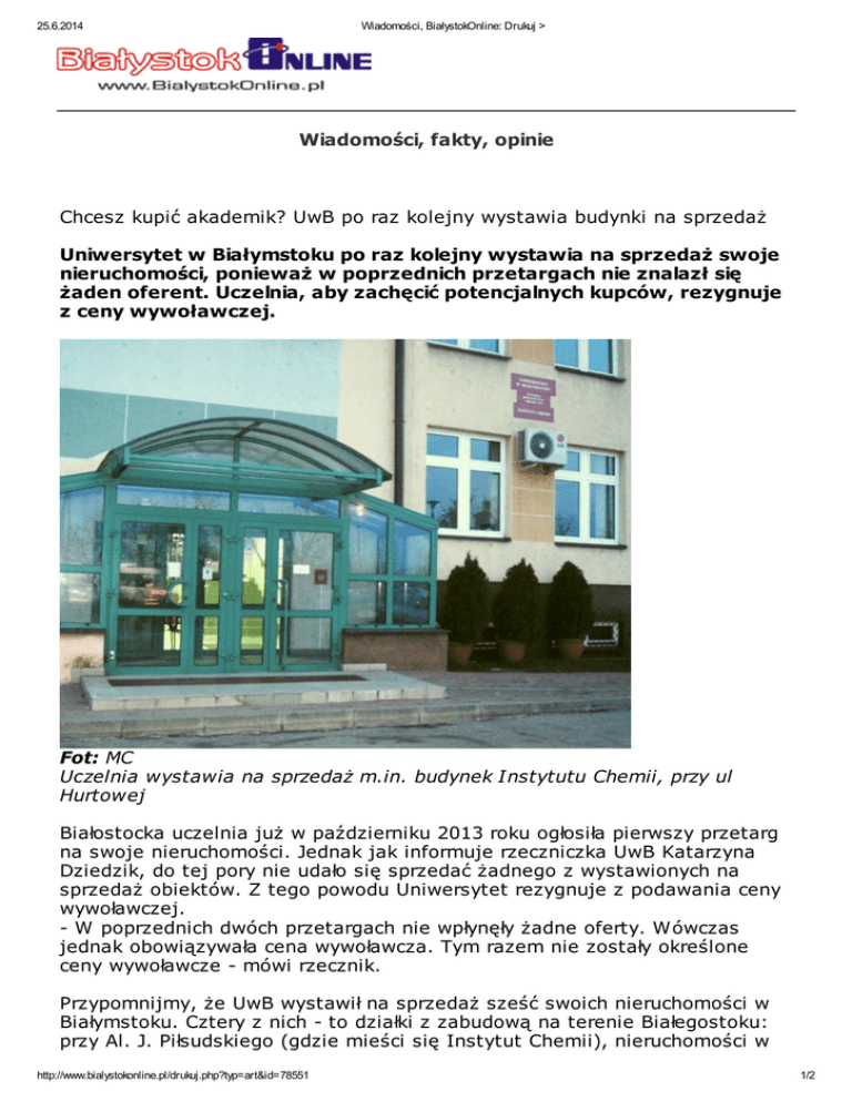 Wiadomości, fakty, opinie Chcesz kupić akademik? UwB po raz