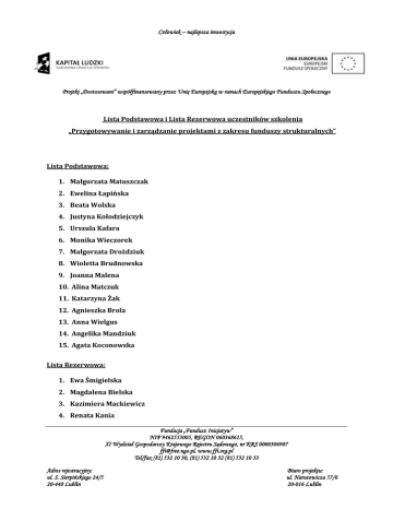 Lista Podstawowa i Lista Rezerwowa uczestników szkolenia