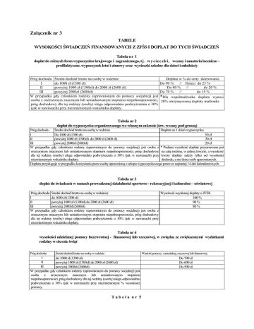 Tabele wysokości świadczeń finansowanych z ZFŚS Załącznik nr 3