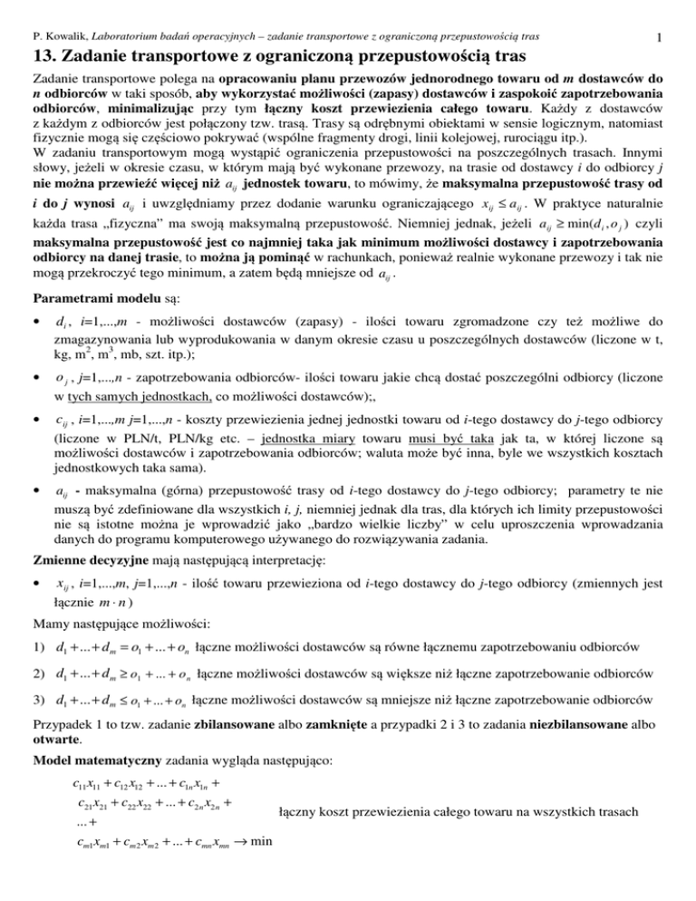 13. Zadanie transportowe z ograniczoną przepustowością tras