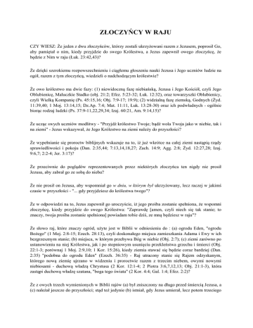 w raju") stawia Jezusa w pozycji kłamcy, znaczyłoby to bowiem, iż obiecał On złoczyńcy, że znajdzie