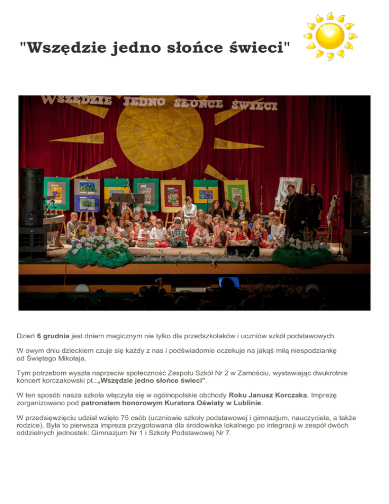 Wszędzie jedno słońce świeci - Zespół Szkół nr 2 w Zamościu