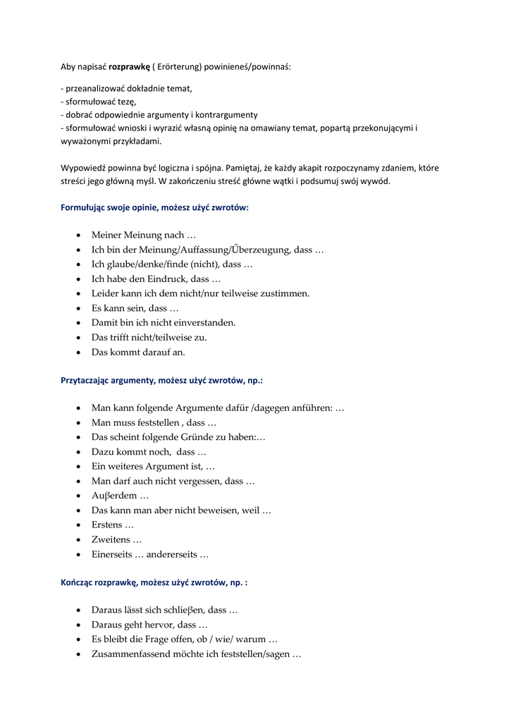 Aby napisad rozprawkę ( Erörterung) powinieneś/powinnaś