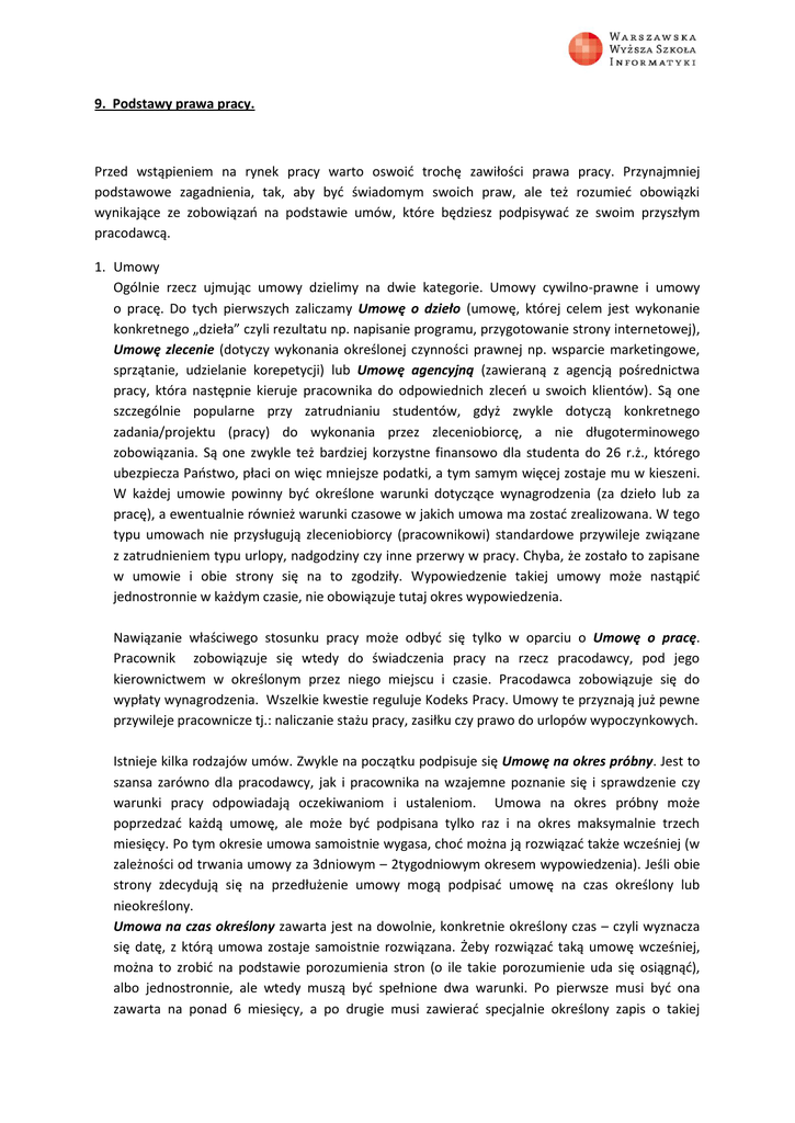 9. Podstawy prawa pracy. Przed wstąpieniem na rynek pracy warto