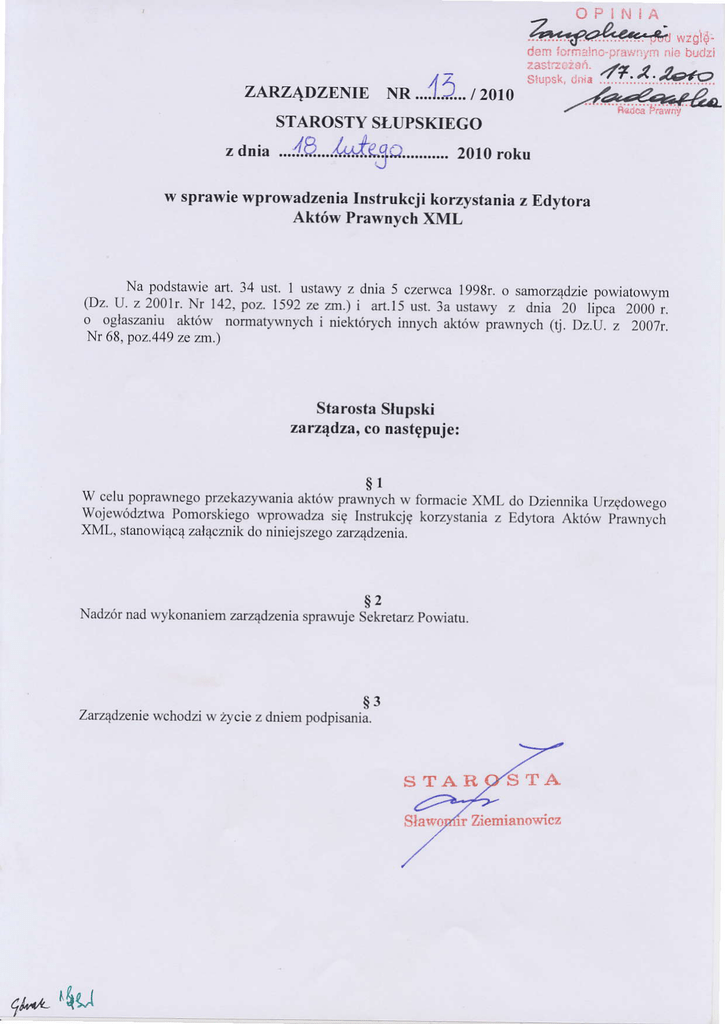 Starosty Słupskiego z dnia 18 lutego 2010r.
