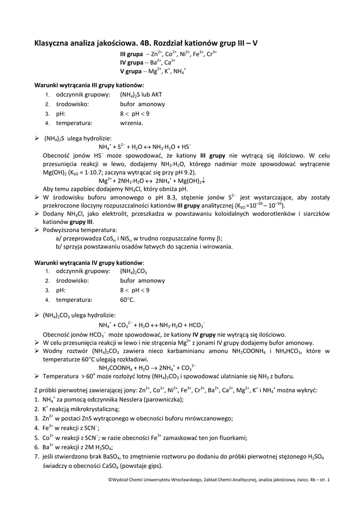 Klasyczna analiza jakościowa. 4B. Rozdział kationów grup III – V