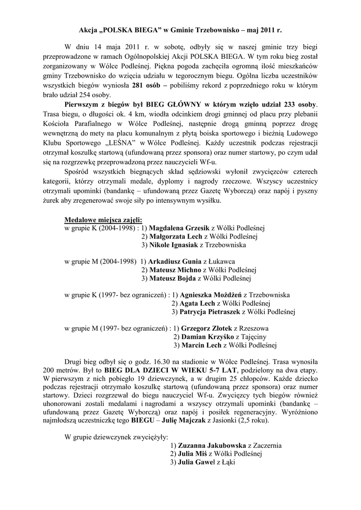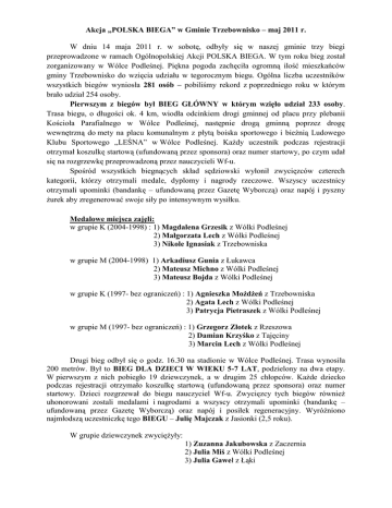 Akcja „POLSKA BIEGA” w Gminie Trzebownisko – maj 2011 r. W