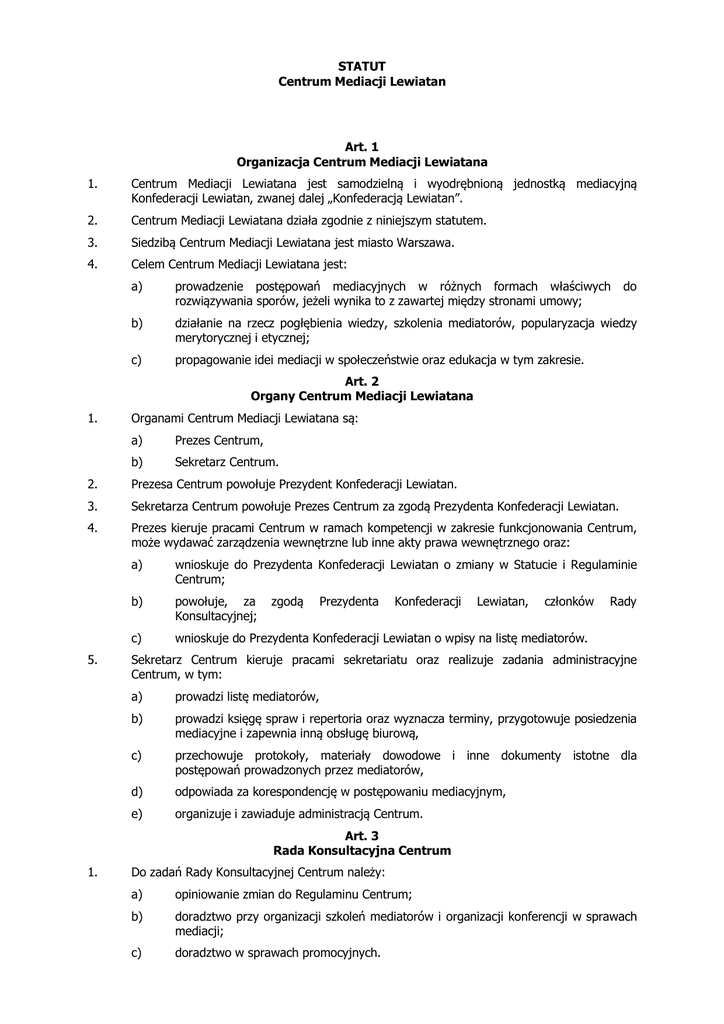 STATUT Centrum Mediacji Lewiatan Art. 1 Organizacja Centrum