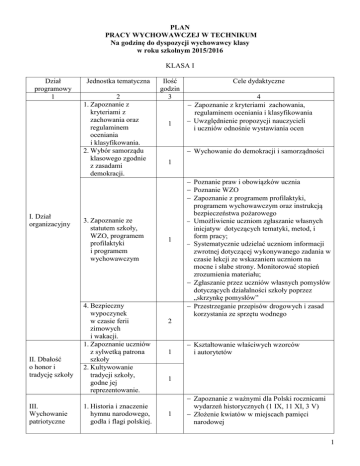 1 PLAN PRACY WYCHOWAWCZEJ W TECHNIKUM Na godzinę do