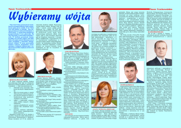 Nasze Trzebownisko Nasze Trzebownisko Wybieramy wójta Wójt Józef Fedan postanowił nie kandydować na następną kadencję. Dobrze gospodarzył gminą przez ostatnie 12 lat. Niech teraz inni pokażą, co potrafią. Jego następcę poznamy po wyborach 16 listopada, w ostateczności - w ostatni dzień listopada po przeprowadzeniu II tury głosowania. Do roli wójta gminy Trzebownisko kandyduje 7 osób. W krótkiej prezentacji chcemy przybliżyć ich sylwetki, napisać, choć kilka zdań o ich zamierzeniach. Informacje na ten temat czerpaliśmy z materiałów udostępnionych redakcji NT przez poszczególne komitety wyborcze. Kandydatury przedstawiamy w kolejności alfabetycznej, w takiej też ich nazwiska znajdą się na karcie do głosowania. stanowisku dyrektora zakładu. Reprezentuje wysoką kulturę osobistą. Wymaga wiele od siebie i innych, zawsze jednak potrafi dogadywać się z ludźmi. Od 2010 roku przewodniczy Radzie Gminy w Trzebownisku. W obiektywnej ocenie, Rada, mimo zróżnicowanego politycznie składu, mimo różnicy zdań w wielu kwestiach, pracowała pod jej kierunkiem intensywnie i owocnie, dobrze współpracując z kierownictwem UG. To konstruktywne współdziałanie, to w znacznym stopniu właśnie zasługa Bogusławy Czachor. Jej kandydaturę promuje Komitet Wyborczy Wyborców Bogusławy Czachor. Komitet ten wystawił ponadto swych kandydatów do RG we wszystkich 21 okręgach wyborczych. LESŁAW KUŹNIAR ZBIGNIEW KASIAK BOGUSŁAWA CZACHOR W ulotce wyborczej napisała: Funkcja przewodniczącej Rady dała mi obiektywne spojrzenie na bieżące problemy i potrzeby nas wszystkich (…). Jako wójt zamierzam m.in: doskonalić pracę samorządu, eliminować złe nawyki i zbędną biurokrację; dążyć do rozwoju gminy w ramach obecnych granic administracyjnych; jako priorytet potraktować budowę i modernizacje dróg gminnych, chodników i oświetlenia; zadbać o maksymalne wykorzystanie środków unijnych i dotacji budżetowej; wspierać przedsiębiorców gwarantujących stałe zatrudnienie mieszkańcom; pomagać rodzinom najbiedniejszym, osobom niepełnosprawnym, starym i samotnym. Bogusława Czachor ma lat 52, mieszka w Zaczerniu. Ukończyła studia doktoranckie na Uniwersytecie Ekonomicznym w Krakowie. Pracuje zawodowo od 33 lat, ostatnio na Komitet Wyborczy Wyborców „Zmiana”, który wysunął kandydaturę 56 letniego Zbigniewa Kasiaka z Łąki, zarejestrował swe listy kandydatów do RG w 11 okręgach. Program KWW „Zmiana” zawiera 10 punktów. Cytujemy je in extenso: 1. Obniżenie podatków (rolny, nieruchomości), 2. Uszczelnienie systemu gospodarowania odpadami, 3. Likwidacja Straży Gminnej, 4. Infrastruktura (budowa chodników, dróg, uzbrojenie terenów w kanalizację, wodę i gaz), 5. Likwidacja „Res Fungis” (który smrodzi i truje mieszkańców), 6. Uszczelnić system zapomóg finansowych (jedni dostają, a drudzy nie), 7. Sprawiedliwy podział środków finansowych dla poszczególnych miejscowości, 8. W miarę możliwości doposażyć szkoły w pomoce szkolne, naukowe, 9. Uszczelnić system finansowania sportu i kultury, 10. Wójt Gminy przekaże 50 % uposażenia zasadniczego na potrzeby Gminy. Komitet Wyborczy Nasza Gmina Trzebownisko, który wysunął kandydaturę Lesława Kuźniara, zarejestrował swych kandydatów na radnych RG w 18 okręgach. W zbiorowej ulotce precyzują oni kilka najważniejszych przedsięwzięć na kadencję 2014 2018. Są to: -budowa przedszkoli w Stobiernej i Jasionce oraz dokończenie takiej inwestycji w Łukawcu; -powstanie żłobka gminnego; realizacja mostu łączącego Łukawiec z Wólką Podleśna; -uzbrojenie dalszych terenów pod budownictwo mieszkaniowe; -kontynuacja budowy dróg lokalnych i chodników; -modernizacja sieci oświetlenia ulicz-nego; -dalsza rozbudowa bazy sportowej LKS oraz GOSiR w Nowej Wsi; -kontynuacja prac przy sieci wodociągowo kanalizacyjnej (układ pierścieniowy). Lesław Kuźniar, lat 53, od 2010 roku pełni funkcję zastępcy wójta gminy Trzebownisko; nadzoruje sprawy budownictwa i rozwoju gospodarczego, ochrony środowiska, rolnictwa i gospodarki gruntami a także problematykę pozyskiwania dla gminy środków zewnętrznych. Reprezentuje interesy gminy w Zarządzie Międzygminnej Komunikacji Samochodowej (MKS). Bierze aktywny udział w kampanii, której celem jest przeciwstawienie się planom zmiany granic gminy Trzebownisko oraz włączenia jej w granice miasta. I jak dotąd, są to działania w pełni skuteczne. Przed przyjściem do UG pracował w kolejowej straży pożarnej oraz w Elektrociepłowni Rzeszów. Posiada tytuł magistra inżyniera, absolwent Akademii Finansów w Warszawie. Z żoną Małgorzatą mieszkają w Stobiernej. Mają dwóch dorosłych synów. JAN LECH Jan Lech już po raz trzeci startuje do funkcji wójta gminy Trzebownisko. - Mój cel pisze w deklaracji wyborczej to gmina stale rozwijająca się, gdzie praca w urzędzie nie jest przywilejem, lecz zaszczytem, gdzie nie ma ludzi niepotrzebnych i odrzuconych, a ci, których skrzywdził los mogą liczyć na skuteczną pomoc. Gmina powinna pozostać w dotychczasowych granicach (…). Dalszy rozwój gminy i oczekiwania mieszkańców wymagają dużych nakładów finansowych. Aby sprostać tym wyzwaniom niezbędne jest pozyskiwanie funduszy zewnętrznych (…). Wiele zależy od władz powiatu rzeszowskiego. Zdecydowałem się, więc kandydować również do Rady Powiatu, aby wzmocnić listę i wprowadzić do Rady jak najwięcej naszych przedstawicieli, osiągając tym samym znaczący wpływ na przyszłe inwestycje… Ma 56 lat i mieszka w Stobiernej. Przez 15 lat pracował w „Instalu” m.in. jako główny energetyk, potem prywatny przedsiębiorca. Od 2004 roku zastępca dyrektora Departamentu Dróg i Transportu Urzędu Marszałkowskiego. Sponsorował działalność wiejskich klubów sportowych, pasjonat piłki nożnej. Dziadek dla Blanki i Filipa. Komitet Wyborczy Wyborców Porozumienie Społeczno Gospodarcze „R