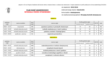 PLAN ZAJĘĆ AKADEMICKICH WYDZIAŁU CHEMII STOSOWANEJ