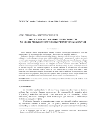 wpływ składu kwasów tłuszczowych na cechy miękiszu ciast