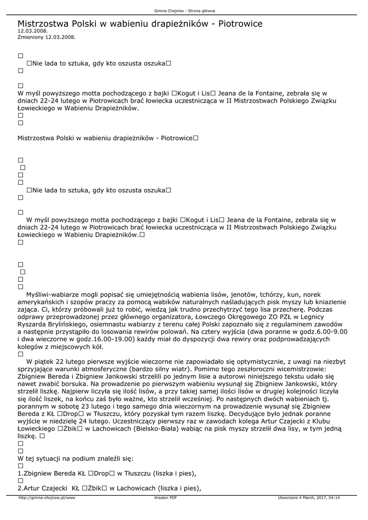 Chojnowie. Muszę jeszcze dodać, że najwięcej lisów (5 szt.) padło w łowiskach należących do KŁ