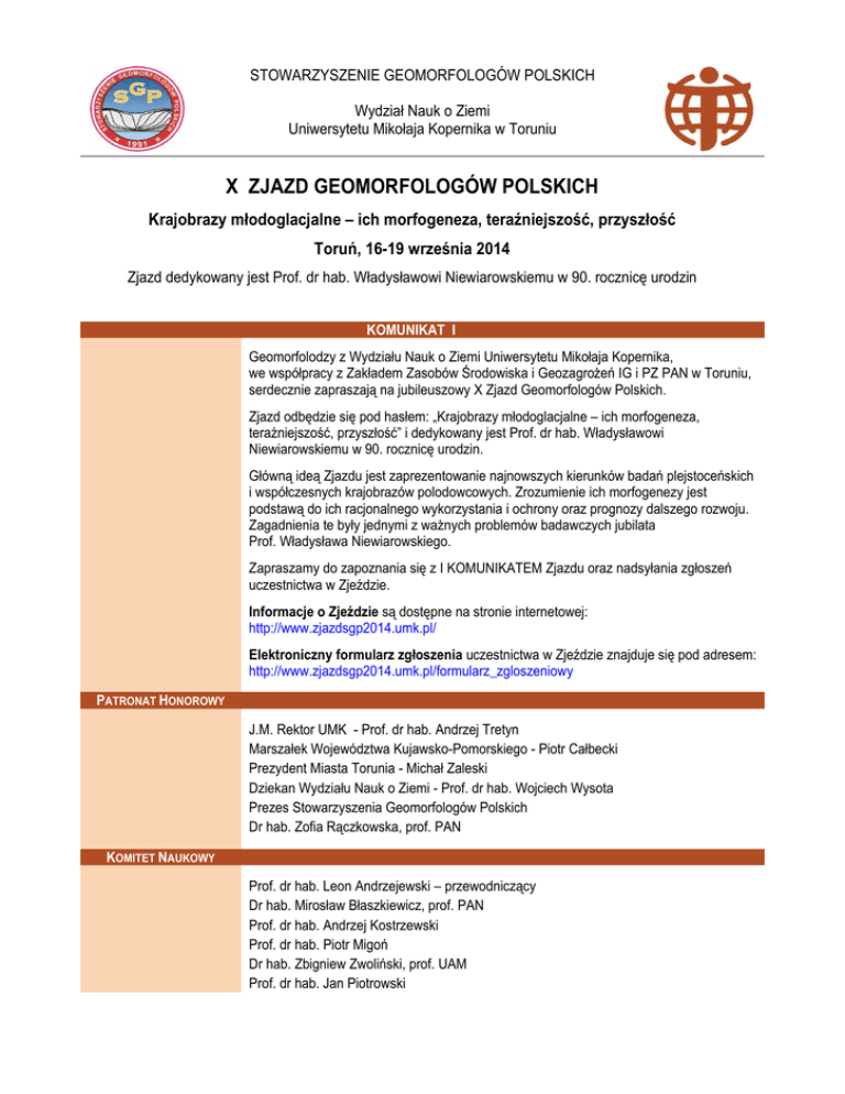 komunikat I - X Zjazd Geomorfologów Polskich 2014