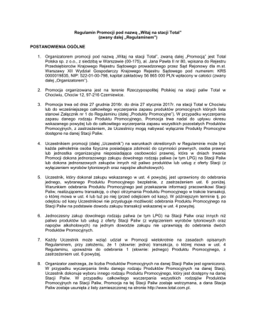 Regulamin Promocji pod nazwą „Witaj na stacji Total”