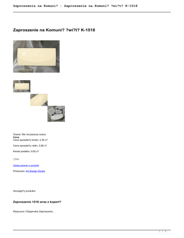 Zaproszenia na Komuni? : Zaproszenie na Komuni? ?wi?t? K-1518 Zaproszenie na Komuni? ?wi?t? K-1518 Ocena: Nie ma jeszcze oceny Cena Cena sprzeda?y brutto: 3,30 z? Cena sprzeda?y netto: 2,68 z? Kwota podatku: 0,62 z? Zadaj pytanie o produkt Producent: Art.Design Studio Szczegó?y produktu Zaproszenie 1518 wraz z kopert? Klasyczne i Eleganckie Zaproszenie... 1 / 4 Zaproszenia na Komuni? : Zaproszenie na Komuni? ?wi?t? K-1518 z motywem wici w kolorze kremowym. Dzi?ki uniwersalnemu przekazowi mo?esz je wykorzysta? na wielek okazji, np.: ?lub, chrzest, komuni?. To odpowiednie zaproszenie na urodziny, czy okr?g?? rocznic? ?lubu. Doskona?a okazja dla wymagaj?cych. Opis Produktu rozmiary: gdy jest zamkni?te 165x85 mm gdy jest otwarte 165x228 mm rozmiar koperty 175x90 mm blankiet: bardzo wysokiej jako?ci papier w kolorze kremowym, z unikaln? faktur? drobnego rastra, dodatkowo zdobiony przez nas per?ow? foli?, grubo?? 160 gram Nadruk wykonywany jest bezpo?rednio na ok?adce. koperta: bardzo wysokiej jako?ci papier w kolorze kremowym, o grubo?ci 100 gram Zaproszenie 1518 jest dopasowane graficznie do menu M1502 winietki W1502 Rabaty Ilo?ciowe Zaproszenia ?lubne (z nadrukiem): od 51 do 100 sztuk - 5% od 101 do 150 sztuk - 8% od 151 do 200 sztuk - 10% od 201 sztuk - do uzgodnienia Rabaty ilo?ciowe obejmuj? zamówienia z?o?one na jeden wzór i dotycz? z?o?onych zamówie? na zaproszenia ?lubne z nadrukiem, rabat odliczany jest od cen zaprosze? z nadrukiem. W przypadku zamówienia zaprosze? bez nadruku, rabat nie jest uwzgl?dniany. Rabaty obejmuj? wy??cznie artyku?y z grupy "Zaproszenia ?lubne". Nie dotycz? galerii: OKAZJE Rabaty nie obejmuj? dodatkowych opcji jak: Personalizacja, Wycinanie Laserowe, T?oczenie, Z?ocenie, Dodatkowy Nadruk, Nadruk i Personalizacja na kopertach. * Rabaty nie ??cz? si? z innymi promocjami i okazjami. Dodatkowe Opcje 2 / 4 Zaproszenia na Komuni? : Zaproszenie na Komuni? ?wi?t? K-1518 Nadruk dowolnej tre?ci na zaproszeniu: + 0,70 z?/szt. do dyspozycji s? 3 cz??ci zaproszenia (górna, ?rodkowa i dolna), mo?liwo?? nadruku inicja?ów na ok?adce. Personalizacja nazwisk: + 0,70 z?/szt. mo?liwo?? wpisania nazwisk go?ci w tre?? zaproszenia, np: mamy zaszczyt zaprosi? "Sz.P. Jana Kowalskiego z osob? towarzysz?c?" itp. * Inne Opcje Dodatkowe Jak Zamawia? Z?ó? zamówienie mailem: [email protected], podaj?c wszelkie informacje potrzebne do zrealizowania zamówienia, takie jak: 1. Model Zaproszenia, 2. Ilo?? (ewentualny podzia?, np. wszystkich: 82 szt, w tym 40 szt. zaprosze? na ?lub i wesele, 20 szt. na sam ?lub i 20 szt. jako zawiadomienia, i 2 szt. dla rodziców) 3. Tre?? Zaprosze? (w pliku tekstowym: Word, Excel, Notatnik, w tre?ci wiadomo?ci mailowej), ewentualny podzia? na poszczególne tre?ci (?lub, ?lub i wesele, zawiadomienie, dla Rodziców itp.), 4. Je?li b?dziemy wykonywa? Personalizacj? (osobny plik z imionami i nazwiskami, wypnktowany. W tre?? zaproszenia: w dope?niaczu, je?li na koperty: w mianowniku) 5. Krój Czcionki z naszych propozycji, lub podaj nazw? czcionki. 6. Wybierz Kolor Nadruku, 7. Ewentualny Ozdobnik drukowany na stronach gdzie drukowana b?dzie tre??. 8. Form? zap?aty: Przelew (przedp?ata), Pobranie, P?atno?? gotówk? przy odbiorze osobistym u nas w biurze 9. Form? Wysy?ki: Poczta Polska, Kurier, Odbiór Osobisty Maksymalnie nast?pnego dnia wy?lemy do Ciebie tzw. Sk?ad do Akceptu w PDF, po akceptacji, przyst?pimy do druku i przygotujemy zamówienie do wysy?ki lub odbioru. Je?li masz dodatkowe wytyczne do swojego zamówienia, opisz je w mailu, pomo?e nam to przygotowa? sk?ad i unikn?? zb?dnych poprawek. Wybierz Nadruk Pozosta?e Informacje 3 / 4 Zaproszenia na Komuni? : Zaproszenie na Komuni? ?wi?t? K-1518 Zamówienia realizujemy w czasie 5-7 dni od dnia z?o?enia zamówienia, Maksymalnie nast?pnego dnia wysy?amy Sk?ady do Akceptu (projekt) w PDF, dopiero po akceptacji przyst?pujemy do drukowania zamówienia, Gotowe zamówienie wysy?amy Kurierem UPS, Poczt? Polsk?, lub umawiamy si? na odbiór osobisty w naszym Biurze, Mo?esz zap?aci? przelewem, gotówk? przy odbiorze przesy?ki, lub gotówk? przy odbiorze osobistym w naszym biurze, Minimalna ilo?? to 10 szt w zamówieniu. Je?li masz dodatkowe pytania, prosimy o kontakt e-mail, lub telefonicznie: 22 403 95 48, 503 158 696 Gwarantujemy Najwy?sz? Jako?? Produktów oraz Us?ug. Zapraszamy do zakupów. Art.Design Studio 4 / 4 Powered by TCPDF (www.tcpdf.org)
