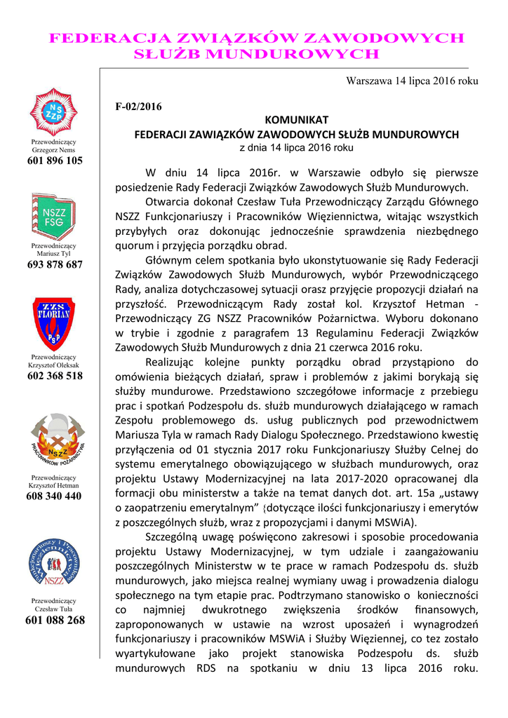 w ramach Federacji Związków Zawodowych Służb Mundurowych. Obecni na