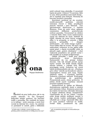 ona Wyspa Szaleńców S potkali się przy kuflu piwa, jak to się zwykle zdarzało. To był Erengard, kislevskie miasto portowe. Do karczmy trafili z przesyłką. Nie wiedzieli do końca co to takiego - może amnezja, a może ktoś wyciął im dziesięć lat z życia*, bo ostatnie co pamiętali to zamek, gdzie z biblioteki * to była sesja z rodzaju „wasze postacie n-lat później, potem mi powiecie co robiły przez ten czas” mieli wykraść inną szkatułkę. O zawartość lepiej nie pytać. Ciekawy? To powiem. Były to uszy, które przedtem sami mieli obciąć... ale to zupełnie inna historia. Niemniej do karczmy przybyli z przesyłką. Karczmarz przyjrzał im się uważnie: zwykli-niezwykli podróżni, człowiek imieniem Garret o lekko przydługich jasnych włosach i paru bliznach oraz spiczastoucha dziewczyna o imieniu Riannon. Przez jej szare włosy splątane rzemieniem delikatnie prześwitywały srebrne pasemka. Towarzyszył im młokos o imieniu Matt, który swym zachowaniem raczej nie ułatwiał im życia. Należeli do Gildii, dziesięć lat temu Garret wciągnął elfkę w tę przygodę, co prawda z lekką pomocą przypadku i zbiegów okoliczności... nie miała innego wyjścia**. Teraz Gildia dala im ucznia. Nie byli z tego zadowoleni, zwłaszcza, że ten, gdyby tylko umiał pisać, z chęcią wywiesiłby sobie na plecach napis „jestem złodziejem” i choć większość pospólstwa nie potrafi czytać i tak uznaliby go za kogoś podejrzanego. Oddali przesyłkę i siedli przy piwie postawionym przez karczmarza. Zastanawiali się czy przyjąć kolejne zlecenie. Gdy tak dumali powoli sącząc mętny trunek, ich stolik minęła bogato ubrana kobieta, z rodzaju tych, które przyciągają wzrok. Zwłaszcza zaś wzrok takich profesjonalistów jak oni. „Chodząca góra złota” mówiły jej koronkowe rękawy, szmaragdowa brosza pod szyją, bogato zdobiony rapier i wypchany mieszek. Zwłaszcza wypchany mieszek. Wzdrygnęli się podchwytując jej spojrzenie. Przypominało pusty, zimny grobowiec. W jednej chwili nawet wypchany mieszek przestał wyglądać kusząco. Zainteresował ją, sądząc po bliznach, doświadczony najemnik, znany w mieście pod imieniem Johan. Rozmowę przerwało jej wejście do karczmy człowieka ubranego w bogato zdobioną zbroję. Templariusz? Uśmiechnęła się na ten widok i torując sobie drogę miedzy stolikami ruszyła w jego stronę. Ludzie zaskakująco chętnie schodzili jej z drogi. Zamienili kilka słów po czym przybysz wskoczył na stołek, zwołał ludzi, przedstawił się jako ** ach, ta pamietna przygoda ze świecznikowym zabójcą... 1 Leitheuser i zaproponował sowitą zapłatę za wyprawę na wyspę o nazwie Iona. Wybuchła wrzawa. Garretowi i Riannon nazwa wyspy wydawała się równie obca jak Albion, Norska czy inne odległe krainy za lub na morzu. Elfka znad kufla obserwowała reakcje bywalców karczmy marynarze byli oburzeni, wystraszeni i zdecydowanie poddenerwowani. Tymczasem Garret postanowił skorzystać z zamieszania i zaopiekować się kilkoma zapomnianymi sakiewkami. Zwinnie przemykał między stołami w myślach licząc zyski. Przeszła mu nawet ochota na podpalenie karczmy. Ogarnięty dobrym humorem beztrosko zgodził się na „małą wycieczkę na uroczą wysepkę” w zamian za garść złotych koron. Dopiero Riannon uświadomiła mu, że mimo wysokiej zapłaty żaden z marynarzy się nie zgłosił, a na wyprawę wyruszają wraz z kobietą o zimnych oczach i dwoma najemnikami, których udało jej się zwerbować. W nocy trójka złodziei ruszyła na poszukiwanie domu wariatów. Zdecydowali się przyjąć zlecenie, wszak na wyprawę mieli wyruszyć dopiero następnego wieczora, a karczmarz tak bardzo nalegał... Przytułek dla szaleńców mieścił się przy świątyni Shallyi. W wejściu stała kamienna misa wypełniona drobnymi monetami. Nad nią zawieszono obraz przedstawiający kobietę w białych szatach o równie białych, ślepych oczach. Ciekły z nich łzy. Garret nie podał imienia człowieka, którego mieli stamtąd wyciągnąć. Kapłance, która ich przywitała naopowiadał jakiś strasznych bzdur – taki nawyk. Tyle, że cele nie były podpisane i kiedy podążali za przewodniczką korytarzami pełnymi anonimowych drzwi wynikł mały problem. Krótko potem ogarnięty nagłą, niewytłumaczalną paniką złodziej ogłuszył kapłankę, która ich prowadziła, zadźgał nożem następną pozostawiając los jej ciała szaleńcowi z celi i cała trójka taktycznie i dość pospiesznie wycofała się ku jedynemu wyjściu z budynku. Elfka z nerwów obgryzła wszystkie paznokcie – nie tak to miało wyglądać! Po drodze ucierpiał jeszcze jeden strażnik, i kilku pod budynkiem. Ostatecznie udało im się dotrzeć do bram miasta w momencie kiedy te były zamykane. Dziwnym zbiegiem okoliczności strażnicy nie chcieli uwierzyć, że spieszy im się na statek. Zdecydowanie nie pomagał fakt, że młody złodziej miał prawie obciętą rękę, a gdzieś z oddali ktoś krzyczał „łapać ich!”. Riannon, nie czekając na reakcję osłupiałego strażnika, popchnęła Matta miedzy zamykające się wrota i pociągnęła drugiego złodzieja za sobą. Skończyło się na tym, że Garret dostał po głowie na odchodnym, ale wydostali się z miasta. Strażnicy zostawili ich samych sobie. Mogli wreszcie odetchnąć. Dopiero teraz uświadomili sobie, ze przyjdzie im nocować poza murami, gdzie podobno żyją trole i gdzie wiatr przypomina o bliskim sąsiedztwie z Pustkowiami Chaosu.... Grupę mającą płynąć na Ionę dogonili rano. Leitheuser przedstawił im współtowarzyszy wyprawy: kobieta miała na imię Anna i podobno była już na Ionie, zaś wynajęci przez nią najemnicy, Ivan i Johan, wiedzieli o wyspie tyle co trójka złodziei, czyli nic. Stało się też jasne, dlaczego strażnicy byli tacy zdziwieni, gdy usiłowali ich przekonać, że spieszą się na statek – dotarli na nadbrzeże, gdzie zewsząd otacz