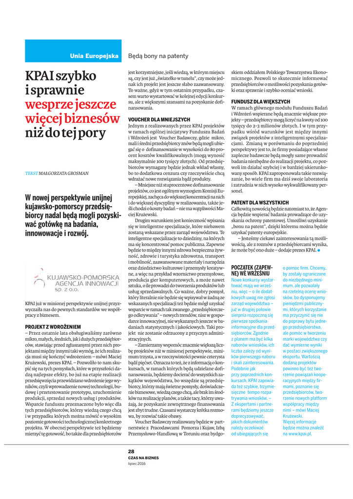 Rkf^Brolmbgph^ .3$,V]\ENR LVSUDZQLH ZHVSU]HMHV]F]H ZLÙFHMEL]QHV³Z QLļGRWHMSRU\ 7(.670$ā*25=$7$*5260$1 Tkltbgmbopmbhqvtfbrkfgkbg hrg^tphl*mljlop`vmowbapf* _flo`vk^a^i_ajldifmlwvphf* t^dlqthk^_^a^kf^) fkkltlt^`gbfolwtg+ .3$,MXļZPLQLRQHMSHUVSHNW\ZLHXQLMQHMSU]\] Z\F]DLĂDQDVGRSHZQ\FKVWDQGDUG³ZZHZVS³Ă SUDF\]EL]QHVHP MOLGBHQWTAOLĊBKFBJ Ř3U]H]RVWDWQLHODWDREVĂXJLZDOLěP\]DU³ZQR PLNURPDĂ\FKěUHGQLFKMDNLGXļ\FKSU]HGVLÙELRU F³ZVWDZLDMÅFSU]HG]JĂDV]DQ\PLSU]H]QLFKSUR MHNWDPLPLÙG]\LQQ\PLWDNLZ\P³JļHLFKUHDOL]D FMDPXVLVLÙNRĄF]\ÇZGURļHQLHPŘP³ZL0DFLHM .UXļHZVNLSUH]HV.3$,Ř3R]ZROLĂRWRQDPVNX SLÇVLÙQDW\FKSRP\VĂDFKNW³UHZSU]\V]ĂRěFLGD G]ÅQDMOHSV]HHIHNW\ERMXļQDHWDSLHUHDOL]DFML SU]HGVLÙZ]LÙFLDSU]HZLG]LDQRZGURļHQLHMHJRZ\ QLN³ZF]\OLZSURZDG]HQLHQRZHMWHFKQRORJLLEX GRZÙLSU]HWHVWRZDQLHSURWRW\SXXUXFKRPLHQLH SURGXNFMLVSU]HGDļQRZ\FKXVĂXJLSURGXNW³Z :VSDUFLHIXQGXV]XSU]H]QDF]RQHE\ĂRZLÙFGOD W\FKSU]HGVLÙELRUF³ZNW³U]\ZLHG]ÅF]HJRFKFÅ LZSU]\SDGNXNW³U\FKPRļQDP³ZLÇRZ\VRNLP SR]LRPLHJRWRZRěFLWHFKQRORJLF]QHMNRQNUHWQHJR SURMHNWX:REHFQHMSHUVSHNW\ZLHWHļEÙG]LHP\ PLHU]\ÇWÙJRWRZRěÇERWDNļHGODSU]HGVLÙELRUF³Z ?a_lkvk^m^qbkqv MHVWNRU]\VWQLHMV]HMHěOLZLHG]ÅZNW³U\PPLHMVFX VÅF]\MHVWMXļşěZLDWHĂNRZWXQHOXŞF]\PRļHMHG QDNLFKSURMHNWMHVWMHV]F]HVĂDER]DDZDQVRZDQ\ 7RZDļQHJG\ļZW\PRVWDWQLPSU]\SDGNXF]D VHPZDUWRZ\VWDUWRZDÇZNROHMQHMHG\FMLNRQNXU VXDOH]ZLÙNV]\PLV]DQVDPLQDSR]\VNDQLHGRIL QDQVRZDQLD SLR@EBOAI>JKFBGPWV@E -HGQ\P]UHDOL]RZDQ\FKSU]H].3$,SURMHNW³Z ZUDPDFKRJ³OQHMLQLFMDW\Z\)XQGXV]X%DGDĄ L:GURļHĄMHVW9RXFKHU%DGDZF]\JG]LHPLNUR PDOLLěUHGQLSU]HGVLÙELRUF\]Q³ZEÙGÅPRJOLXELH JDÇVLÙRGRILQDQVRZDQLHZZ\VRNRěFLGRSUR FHQWNRV]W³ZNZDOLILNRZDOQ\FKPRJÅZ\QRVLÇ PDNV\PDOQLHW\VLÙF\]ĂRW\FK2GSU]HGVLÙ ELRUF³ZZ\PDJDQ\EÙG]LHMHGQDNZNĂDGZĂDVQ\ ERWRGRGDWNRZDFHQ]XUDF]\U]HF]\ZLěFLHFKFÅ ZGUDļDÇQRZHUR]ZLÅ]DQLDEÅGĺSURGXNW\ Ř0QLHMV]HQLļVWXSURFHQWRZHGRILQDQVRZDQLH SURMHNW³ZFRMHVWRJ³OQ\PZ\PRJLHP.RPLVML(X URSHMVNLHM]DFKÙFDGRZLÙNV]HMNRQFHQWUDFMLQDQLFK LGRZLÙNV]HMG\VF\SOLQ\ZUHDOL]RZDQLXWDNļHMH ěOLFKRG]LRNRV]W\EDGDĄŘQLHPDZÅWSOLZRěFL0D FLHM.UXļHZVNL 'UXJLPZDUXQNLHPMHVWNRQLHF]QRěÇZSLVDQLD VLÙZLQWHOLJHQWQHVSHFMDOL]DFMHNW³UHQLHEDZHP ]RVWDQÅZVND]DQHSU]H]]DU]ÅGZRMHZ³G]WZD7H LQWHOLJHQWQHVSHFMDOL]DFMHWRG]LHG]LQ\QDNW³U\FK PDVLÙNRQFHQWURZDÇSRPRFSXEOLF]QD=DSHZQH EÙG]LHWRPLÙG]\LQQ\PL]GURZDEH]SLHF]QDļ\Z QRěÇ]GURZLHLWXU\VW\ND]GURZRWQDWUDQVSRUW LPRELOQRěÇ]DDZDQVRZDQHPDWHULDĂ\LQDU]ÙG]LD RUD]G]LHG]LFWZRNXOWXURZHLSU]HP\VĂ\NUHDW\Z QHDZLÙFQDSU]\NĂDGZ]RUQLFWZRSU]HP\VĂRZH SURGXNFMDJLHUNRPSXWHURZ\FKDPRļHQDZHW V]WXNDRLOHSURZDG]LGRWZRU]HQLDSURGXNW³ZOXE XVĂXJVSU]HGDZDOQ\FK&RZDļQHGREU\SRP\VĂ NW³U\OLWHUDOQLHQLHEÙG]LHVLÙZSLV\ZDĂZļDGQÅ]H ZVND]DQ\FKVSHFMDOL]DFMLWHļEÙG]LHP³JĂX]\VNDÇ ZVSDUFLHZUDPDFKWDN]ZDQHJRşSU]HGVLÙELRUF]H JRRGNU\ZDQLDŞŘQRZ\FKWUHQG³ZQLV]ZJRVSR GDUFHLQQRZDF\MQHMQLHZ\ND]DQ\FKMHV]F]HZED GDQLDFKVWDW\VW\F]Q\FKLMDNRěFLRZ\FK7DNLSUR MHNWQLH]RVWDQLHRGU]XFRQ\]SU]\F]\QDGPLQL VWUDF\MQ\FK Ř=DPLHU]DP\ZVSRP³F]QDF]QLHZLÙNV]ÅOLF] EÙSURMHNW³ZQLļZPLQLRQHMSHUVSHNW\ZLHPLQL PXPWU]\VWDDZU]HF]\ZLVWRěFLSHZQLHF]WHU\VWD EÅGĺSLÙÇVHW2]QDF]DWRWHļļH]LQIRUPDFMÅRNRQ NXUVDFKZUDPDFKNW³U\FKEÙGÅXG]LHODQHGRIL QDQVRZDQLDEÙG]LHP\GRFLHUDÇGRZV]\VWNLFK]D NÅWN³ZZRMHZ³G]WZDERZV]ÙG]LHVÅSU]HGVLÙ ELRUF\NW³U]\PDMÅěZLHWQHSRP\VĂ\GRěZLDGF]H QLHEL]QHVRZHZLHG]ÅF]HJRFKFÅDOHEUDNLPěURG N³ZQDUHDOL]DFMÙSODQ³ZDWDNļHWDF\NW³U]\XZD ļDMÅļHSR]\VNDQLH]HZQÙWU]QHJRILQDQVRZDQLD MHVW]E\WWUXGQH&]DVDPLZ\VWDUF]\NU³WNDUR]PR ZDE\UR]ZLDÇWDNLHREDZ\ 9RXFKHU%DGDZF]\UHDOL]RZDQ\EÙG]LHZSDUW QHUVWZLH]3UDFRGDZFDPL3RPRU]DL.XMDZ,]EÅ 3U]HP\VĂRZR+DQGORZÅZ7RUXQLXRUD]E\GJR /5 @W>PK>?FWKBP ifmfb`/-.3 VNLHPRGG]LDĂHP3ROVNLHJR7RZDU]\VWZD(NRQR PLF]QHJR3R]ZROLWRVNXWHF]QLHLQIRUPRZDÇ SU]HGVLÙELRUF³ZRPRļOLZRěFLSR]\VNDQLDJRW³Z NLRUD]VSUDZQLHLV]\ENRRFHQLDÇZQLRVNL CRKARPWAI>TFHPWV@E :UDPDFKJĂ³ZQHJRPRGXĂX)XQGXV]X%DGDĄ L:GURļHĄZVSLHUDQHEÙGÅ]QDF]QLHZLÙNV]HSUR MHNW\ŘSU]HGVLÙELRUF\PRJÅOLF]\ÇQDNZRW\RG W\VLÙF\GRPLOLRQ³Z]ĂRW\FK,ZW\PSU]\ SDGNXZěU³GZDUXQN³ZMHVWPLÙG]\LQQ\PL ]ZLÅ]HNSURMHNW³Z]LQWHOLJHQWQ\PLVSHFMDOL]D FMDPL=PLDQÅZSRU³ZQDQLXGRSRSU]HGQLHM SHUVSHNW\Z\MHVWWRļHILUP\SRVLDGDMÅFHZĂDVQH ]DSOHF]HEDGDZF]HEÙGÅPRJĂ\VDPHSURZDG]LÇ EDGDQLDQLH]EÙGQHGRUHDOL]DFMLSURMHNWXFRSR] ZROLLPG]LDĂDÇV]\EFLHMLZEDUG]LHMXNLHUXQNR ZDQ\VSRV³E.3$,]DSURSRQRZDĂDWDNLHUR]ZLÅ ]DQLHERZLHOHILUPPDG]LěVZRMHODERUDWRULD L]DWUXGQLDZQLFKZ\VRNRZ\NZDOLILNRZDQ\SHU VRQHO M>QBKQAI>TPWVPQHF@E &DĂNRZLWÅQRZRěFLÅEÙG]LHQDWRPLDVWWRļH$JHQ FMDEÙG]LHZVSLHUDÇEDGDQLDSURZDG]ÅFHGRX]\ VNDQLDRFKURQ\SDWHQWRZHM8PRļOLZLX]\VNDQLH şERQXQDSDWHQWŞG]LÙNLNW³UHPXPRļQDEÙG]LH X]\VNDÇSDWHQW\HXURSHMVNLH Ř-HVWHěP\FLHNDZL]DLQWHUHVRZDQLDWÅPRļOL ZRěFLÅDOH]UR]P³Z]SU]HGVLÙELRUFDPLZ\QLND ļHPRļHE\ÇRQRGXļHŘGRGDMHSUH]HV.3$,a ML@WQBH%W>MBT* KB&TBTOWBèKFR Kltbhlkhropvtvpq^o* qlt^j^gtbtowb¶* kfr)tf`Ëlfibala^q* hltv`ert^dkfbwdlpf w^owatlgbtawqt^Ë grċtaordfbgmlltfb pfbomkf^olwml`wkpf mfbotpwbpmlqh^kf^ fkcloj^`vgkbai^mowba* pf_flo`t+Wdlakfb wmi^kbjj^_vhfih^ k^_lottkflpht)f`e if`w_^w^ibċvlatvkf* htmfbotpwbdlk^_lor fph^ifw^fkqbobplt^kf^+ Mlal_kfbg^h mowvmlmowbakf`ehlk* hrop^`e)HM>Fw^mltf^* a^qbċpwv_hfb)qowvjfb* pf`wkbqbjmlolwm^* qovt^kf^tkflpht+Ë Wbhpmboq^jffm^oqkb* o^jf_awfbjvgbpw`wb almob`vwltvt^) g^hf`ealhrjbkqt k^ibċvl`wbhft^ lar_fbd^g`v`epf lmljl`cfoj+@e`bjv) _vwlpq^vldo^kf`wlkb alkfbw_akbdljfkf* jrj)^ibmlwt^i^v k^owbqbikl`bktkfl* pht)_lavpmlkrgbjv mfbkfawjfmr_if`wkv* jf)hqov`ehlowvpq^kfb j^mowv`wvkfpfkfb almlmo^tv_vqrgbakb* dlmowbapf_flopqt^) ^ibmlj`tqtlowbkfr j^ohftlgbtawqt^`wv a^tvjfbokbtvkfhf tmlpq^`fwtfhpwlkbdl bhpmloqr+T^oql¶`f ala^kmolgbhqt mltfkkl_vqbċqtl* owbkfbmltfw^Óhllmb* o^`vgkv`ejfawvcfo* j^jf)mlwk^kfbpf mowbapf_flo`t)qtl* owbkfbkltv`emi^qcloj tpmmo^`vjfawv kfjfËjtfJ^`fbg Horċbtphf+ Tf`bgfkcloj^`gb _awfbjlċk^wk^ib k^ttt+hm^f+mi+