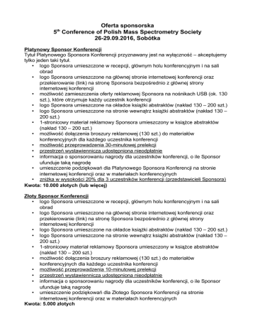Oferta sponsorska 5th Conference of Polish Mass Spectrometry