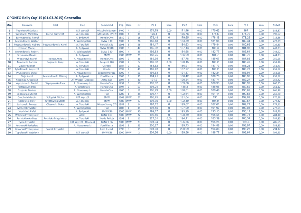 OPONEO Rally Cup`15 (01.03.2015) Generalka