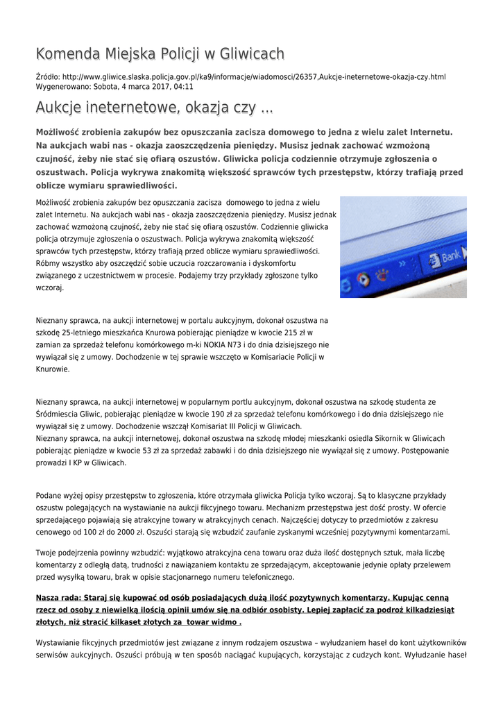 Komenda Miejska Policji w Gliwicach Aukcje ineternetowe, okazja