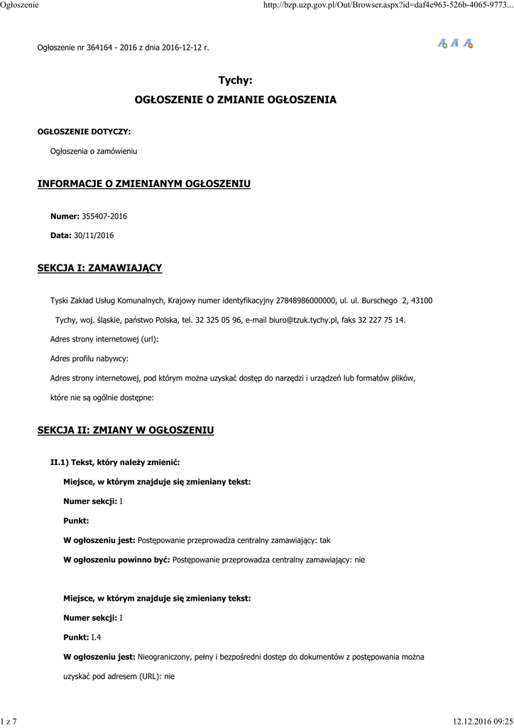 Ogłoszenie o zm.ogłoszenia przesłane do publikacji