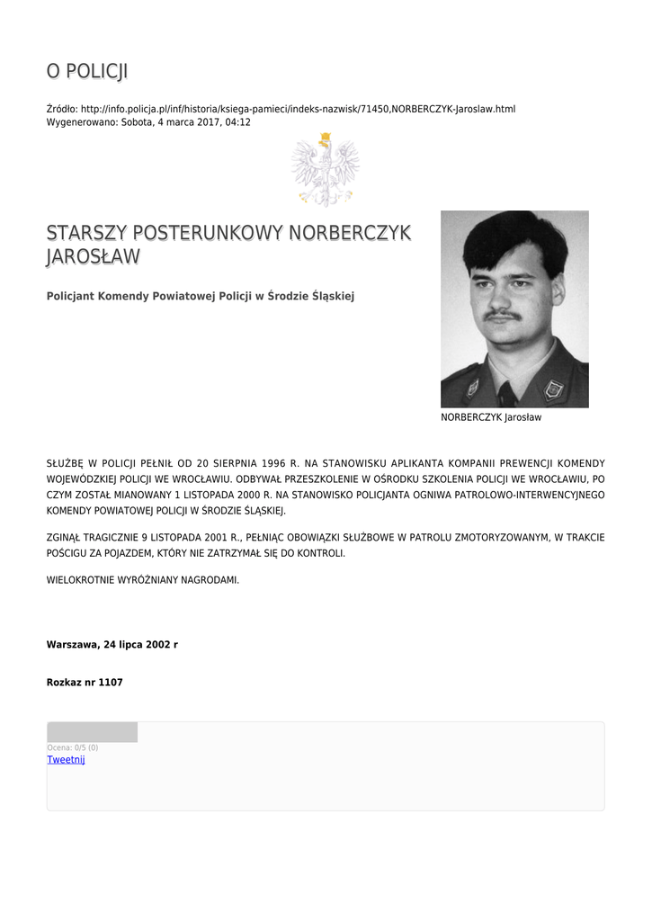 O POLICJI STARSZY POSTERUNKOWY NORBERCZYK JAROSŁAW