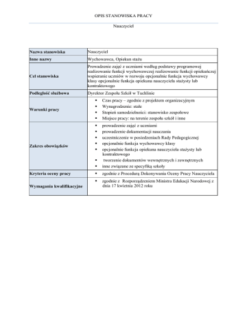 OPIS STANOWISKA PRACY Nauczyciel Nazwa stanowiska