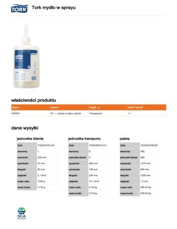 Tork mydło w sprayu właściwości produktu dane wysyłki - MOP