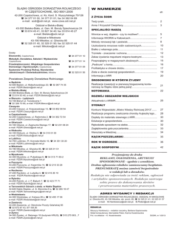 ŚLĄSKI OŚRODEK DORADZTWA ROLNICZEGO W CZĘSTOCHOWIE, ISO 9001:2000 42-200 Częstochowa, ul. Ks. Kard. S. Wyszyńskiego 70/126 34 377 01 00, 34 377 01 01; fax 34 362 04 89 e-mail: [email protected], www.czwa.odr.net.pl Oddział w Bielsku-Białej 43-300 Bielsko-Biała, ul. Gen. M. Boruty Spiechowicza 24 33 814 45 41, 33 827 34 40; fax 33 814 45 27 e-mail: [email protected] Oddział w Mikołowie 43-190 Mikołów; ul. Gliwicka 85 32 325 01 40, 32 325 01 50; fax 32 325 01 44 e-mail: [email protected] Działy: Ekonomiki, Częstochowa Metodyki, Doradztwa, Szkoleń i Wydawnictw Częstochowa Przedsiębiorczości, Wiejskiego Gospodarstwa Domowego i Agroturystyki, Częstochowa Systemów Produkcji Rolnej, Standardów Jakościowych i Doświadczalnictwa, Mikołów 34 377 01 10 34 377 01 14 34 377 01 09 32 325 01 56 Powiatowe Zespoły Doradztwa Rolniczego w Będzinie 42-500 Będzin, ul. Małachowskiego 22, 32 267 74 35 e-mail: [email protected] w Bielsku-Białej 43-300 Bielsko-Biała, ul. Gen. M. Boruty Spiechowicza 24 33 814 93 48, e-mail: [email protected] w Bieruniu - Lędzinach 43-155 Bieruń ul. Turystyczna 1 32 326 70 95, e-mail: [email protected] Cieszynie 43-400 Cieszyn, ul. Kraszewskiego 13, 33 852 08 94 e-mail: [email protected] w Częstochowie 42-200 Częstochowa, ul. Radomska 2, 34 362 72 54 e-mail: [email protected] w Gliwicach 44-100 Gliwice, ul. Zygmunta Starego 17, 32 231 08 24 e-mail: [email protected] w Kłobucku 42-100 Kłobuck, ul. Okólna 3, 34 310 01 00 e-mail: [email protected] w Lublińcu 42-700 Lubliniec, Pl. Konrada Mańki 10, 34 351 30 20 e-mail: [email protected] w Mikołowie 43-190 Mikołów, ul. Gliwicka 85, 32 325 01 51 e-mail: [email protected] w Myszkowie 42-300 Myszków, ul. Pułaskiego 6, 34 313 71 60-2 e-mail: [email protected] w Pszczynie 43-200 Pszczyna, ul. Kopernika 14, 32 210 33 28 e-mail: [email protected] w Raciborzu 47-400 Racibórz, ul. Ludwika 4, 32 415 26 10 e-mail: [email protected] w Rybniku 44-200 Rybnik, ul. J. F. Białych 7, 32 423 77 71 e-mail: [email protected] w Tarnowskich Górach z siedz. w Nakle Śląskim 42-620 Nakło Śląskie, ul. G. Morcinka 9 a, 32 285 18 47 e-mail: [email protected] w Wodzisławiu 44-300 Wodzisław, ul. Kubsza 28 c, 32 455 17 06 e-mail: [email protected] w Zawierciu 42-400 Zawiercie, ul. Obrońców Poczty Gdańskiej 95 32 672 87 43, 671 68 26 e-mail: [email protected] w Żywcu 34-300 Żywiec, ul. Batorego 16 (budynek KRUS), 515 275 903...7 e-mail: [email protected] w numerze str. Z Życia ŚODR Twój rynek.......................................................................... 2 Anna I Krzysztof Cierpińscy............................................... 3 SPECJALIŚCI RADZĄ Winnice w woj. śląskim - czy to możliwe?.......................... 5 Informacja WIORiN w Katowicach..................................... 7 Metody renowacji łąk i pastwisk....................................... 8 Uszkodzenia mrozowe roślin sadowniczych..................... 10 Białko z własnego pola..................................................... 11 Trzmiele - znaczenie i ochrona......................................... 12 Zakaz żywienia mączkami mięsno-kostnymi..................... 13 Posprzątajmy w magazynach zbożowych.......................... 15 „Pedicure” u konia.............................................................. 16 Profilaktyka w chowie drobiu.............................................. 17 Zioła w diecie zwierząt gospodarskich............................... 19 Informacja z ARR 20 ŚRODOWISKO W KTÓRYM ŻYJEMY Realizacja inwestycji w pierwszą biogazownię kontenerową na Śląsku idzie pełną parą!................................... 21 NOTOWANIA.................................................................. 22 ROZWÓJ OBSZARÓW WIEJSKICH Aktualności z ARiMR.......................................................... 25 Sygnały Konkurs Wojewódzki „Mistrz Wiedzy Rolniczej 2013”....... 27 Realizacja programu zwalczania choroby Aujeszky’ego... 28 Dopłaty do materiału siewnego z ARR............................... 30 Edukacja w gospodarstwie................................................. 30 Rękodzieło sposobem na siebie......................................... 32 Zagłębiowska gala pszczelarska........................................ 33 Warsztaty w Miedźnej......................................................... 34 Kącik pszczelarski............................................... 35 Rok w ogrodzie....................................................... 36 Kącik Gospodyni..................................................... 42 Przyjmujemy do druku REKLAMY, OGŁOSZENIA, ARTYKUŁY SPONSOROWANE - zgodnie z cennikiem. Drobne ogłoszenia rolników zamieszczamy bezpłatnie. PRENUMERATĘ można zamówić bezpośrednio w redakcji lub u doradców. Redakcja nie odpowiada za treść reklam, ogłoszeń i artykułów sponsorowanych. Redakcja zastrzega sobie prawo do dokonywania skrótów i przetwarzania materiałów prasowych. ADRES WYDAWCY I REDAKCJI ŚLĄSKI OŚRODEK DORADZTWA ROLNICZEGO, ODDZIAŁ W MIKOŁOWIE ul. Gliwicka 85, 43-190 Mikołów, skr. poczt. 85, 32 325 01 41, 32 325 01 57 e-mail: [email protected]; [email protected] REDAKCJA Maurycy Hankiewicz – redaktor naczelny, Barbara Gąsiorowska Skład komputerowy: Bernadeta Pieter, Karina Kwaśniewska Fot. na okładce – K. Kwaśniewska ŚODR, nr 1/2013 s p ecjaliści r adzą Zakaz żywienia mączkami mięsno-kostnymi wciąż aktualny Mączki mięsno-kostne charakteryzują się wysoką zawartością białka o dużej strawności i korzystnym składzie aminokwasowym. Dlatego były bardzo cenione jako źródło taniego, wysoce wartościowego białka paszowego. Byłyby nadal cenione i stosowane, gdyby nie obowiązujący, administracyjny zakaz ich stosowania w żywieniu zwierząt. Wprowadzono go rozporządzeniem Parlamentu Europejskiego i Rady (WE) 999/2001 z dnia 22 maja 2001 roku ustanawiającym zasady dotyczące zapobiegania, kontroli i zwalczania
