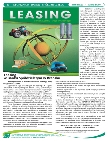 Leasing w Banku Spółdzielczym w Brańsku