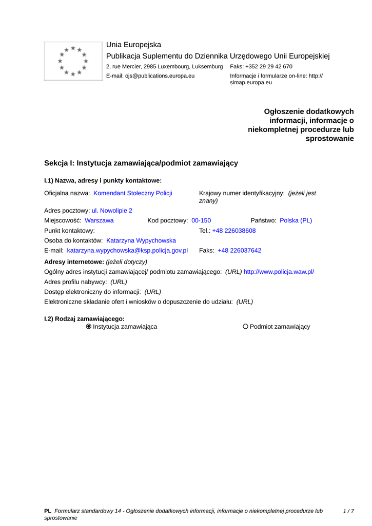 Ogłoszenie dodatkowych informacji, informacje o niekompletnej