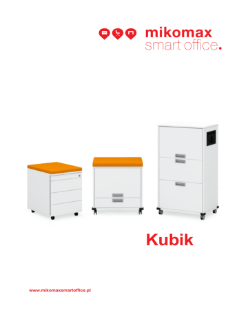 Kubik www.mikomaxsmartoffice.pl Kubik design by Mikomax Team / 01 PL / Żeby być skutecznym w ciągle zmieniającym się otoczeniu, potrzebujemy odpowiedniego wsparcia. Co my proponujemy? Dostarczamy kompaktowe i elastyczne rozwiązanie do przechowywania i indywidualizacji miejsca pracy. System KUBIK to wsparcie na wyciągnięcie ręki. EN / To be effective in a constantly changing environment we need to offer suitable support. What we reccommend? We deliver a compact and flexible storage solution for individuals in the workplace. KUBIK is the support within easy reach. DE / Um uns erfolgreich auf unsere Kernaufgabe zu konzentrieren, brauchen wir bestmögliche Unterstützung. Was schlagen wir vor? Praktische und saubere Lösungen für individuellen Stauraum am Arbeitsplatz: System KUBIK bietet Ablagefläche und den nötigen Raum in greifbarer Nähe. Strefa Współpracy / Cooperation Zone / Bereich für gemeinsames Arbeiten Strefa Skupienia / Concentration Zone / Bereich für gemeinsames Arbeiten Strefa Menadżera / Manager Zone / Managementbereich Strefa Wsparcia / Support Zone / Organisationsbereich / 02 Kubik 1 / Miejsce na nieformalne spotkanie / Informal meeting point / Bereich für informelle Kommunikation 3 / Racjonalne wykorzystanie przestrzeni biura / Rational use of office space / Effiziente Raumplanung / 03 1 2 3 4 2 / W czasie spotkania i podczas pracy wszystko w zasięgu ręki / During work and meetings, everything is within easy reach / Während der Besprechung und während der Arbeit, alles stets griffbereit 4 / Miejsce na przechowywanie dopasowane do wykonywanej pracy / Storage that suits an individual way of working / Stauraum an die Arbeitsweise angepasst 5 / Kontener dostępny z wkładami plastikowymi lub metalowymi / Drawer units available with plastic or metal drawers / Container mit Kunststoffauszügen oder Stahlauszügen 5 / 04 Kubik Elementy systemu / Product range / Produktübersicht Funkcjonalne miejsce pracy / Functional Workplace / Funktionaler Arbeitsplatz Kontenery / Drawer units / Container 1 Kontenery z wkładami plastikowymi / Drawer units with plastic drawers / Container mit Kunststoffauszügen Kontenery z wkładami metalowymi / Drawer units with metal drawers / Container mit Stahlauszügen [W x D x H] 428 / 574 / 593 [W x D x H] 428 / 574; 800 / 593 [W x D x H] 428 / 600 / 735 [W x D x H] 428 / 600; 800 / 735 Caddy / Caddy / Caddy [W x D x H] 602 / 450 / 630 2 3 4 540 / 450 / 630 602 / 450 / 1187 540 / 450 / 1187 705 / 450 / 1187 Kolorystyka / Finishes / Oberflächen Kolor płyty / Decors / Dekore ABB 5 1 / Kółka z hamulcem / Castors with brakes / Lenkrollen, davon 2 feststellbar 2 / Szuflada z piórnikiem / Drawer with pencil tray / Utensilienauszug 3 / Listwa uchwytowa / Handle profile / Griffleiste 6 5-6 / Wielofunkcyjny uchwyt do Caddy / Multifunctional Caddy handle / Multifunktionaler Griff für Caddy 7 / Szuflada kartotekowa / Steel frame for suspension files / Hängeregistraturauszug 7 APS ASM Lakier / Lacquer / Hochglanzlack JBL AAN AJA ADR AAK ACJ AWR ANN ADH Okleina / Veneer / Furnier JCB JKB TCR TKW MWT MDJ MZR Tkaniny / Fabric / Stoff 4 / Uchwyt w szafie z drzwiami żaluzjowymi / Handle in tambour door / Bequemer Griff für Rollladenschränke TPM / 05 TBZ TZN TSZ TGF TGT / 06 Kim jesteśmy? Who are we? Wer sind wir? Mikomax Smart Office to ekspert w tworzeniu nowoczesnych biur łączący fachową wiedzę o produkcji mebli z autorską koncepcją jej zastosowania we współczesnym miejscu pracy Mikomax Smart Office is an expert in designing offices, combining its expertise in office furniture production with its own concept of implementing it within a modern office environment Mikomax Smart Office ist ein Experte im Kreieren von modernen Büros. Das fachliche Wissen zur Möbelherstellung wird hier mit eigenen Urheberkonzepten über die Entstehung von gegenwärtigen Arbeitsbüros verknüpft ul. Dostawcza 4, 93-231 Łódź, PL t: +48 (42) 272 11 31, f: +48 (42) 272 11 39 e: [email protected] w: www.mikomaxsmartoffice.pl