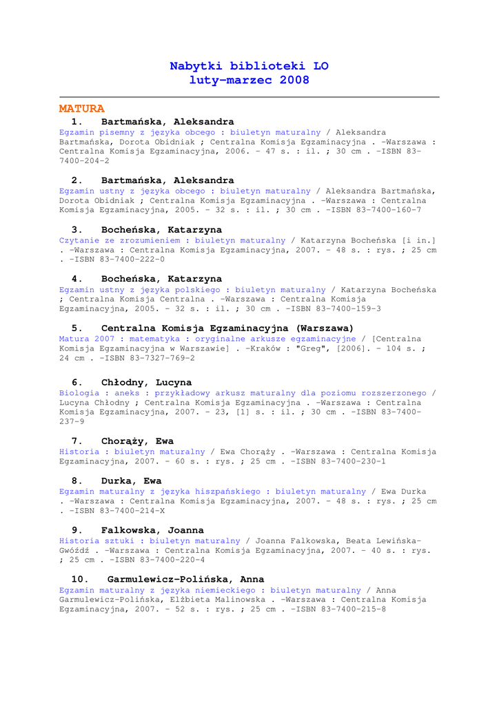 [1] s. ; 30 cm . -Biuletyn maturalny . -ISBN 83-7400-235-2