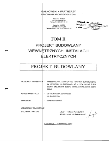 przystosowane sgdo pracy w trybie normalnym i awaryjnym. Instalacjg do gniazd wtykowych 1fazowych wykonac przewodem YK Ftyzo 3 x 2,5 mm z osprzctem p/t, w pomieszczeniach WC