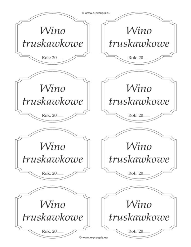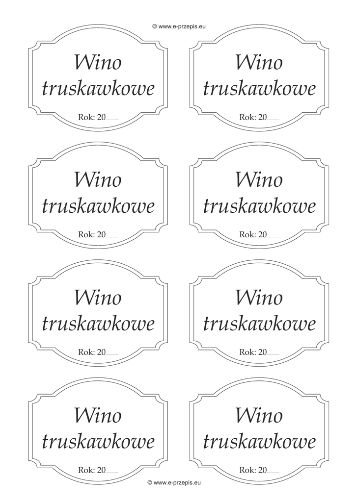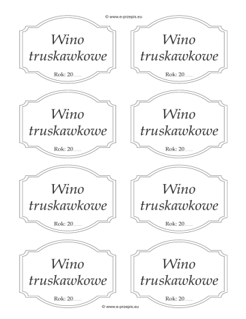 © www.e-przepis.eu Wino truskawkowe Wino truskawkowe Rok: 20.............. Rok: 20.............. Wino truskawkowe Wino truskawkowe Rok: 20.............. Rok: 20.............. Wino truskawkowe Wino truskawkowe Rok: 20.............. Rok: 20.............. Wino truskawkowe Wino truskawkowe Rok: 20.............. Rok: 20.............. © www.e-przepis.eu