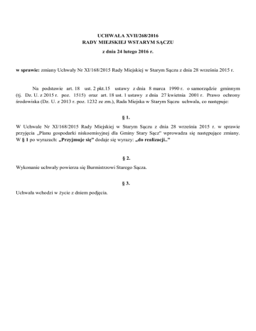 UCHWAŁA XVII/268/2016 RADY MIEJSKIEJ WSTARYM SĄCZU z