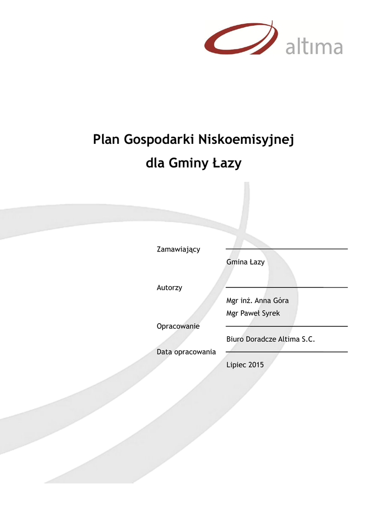 Plan Gospodarki Niskoemisyjnej dla Gminy Łazy
