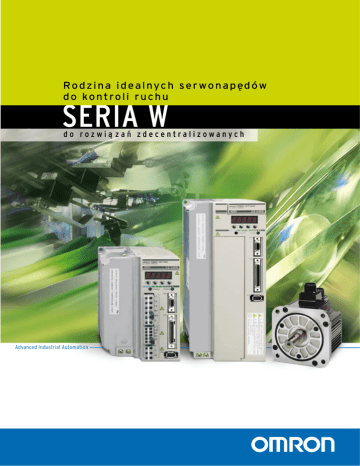Ro d z i n a i d e a l nyc h s e r wo n a p e ˛dów d o ko n t ro l i r u c h u SERIA W d o r o z w i a˛ z a ń z d e c e n t r a l i z o w a n y c h Advanced Industrial Automation Konstrukcja serwonapędów z serii W zapewnia doskonałą kontrolę zarówno prędkości ruchu jak i pozycji ruchomych części maszyn. Każdy system serwonapędu zawiera 32-bitowy procesor RISC i charakteryzuje się szybką regulację prądu i prędkości, a także posiada funkcję autotuningu podczas pracy. Zapewnia to niespotykaną dynamikę działania dzięki dostosowywaniu parametrów sterowania do obciążeń, nieustannie zmieniających się podczas pracy. Dzięki tym funkcjom systemy serwonapędów firmy Omron spełniają najsurowsze nawet wymagania nowoczesnych, precyzyjnych aplikacji przemysłowych, takich jak systemy pakujące, maszyny do wytwarzania narzędzi, linie do układania i montażu elementów półprzewodnikowych oraz maszyny do produkcji obwodów drukowanych i maszyny poligraficzne. Seria W firmy Omron Gdy ważna jest niezawodność i niewielki rozmiar Seria W to wszechstronna rodzina serwonapędów, od jednofazowych lub trójfazowych 230 V do trójfazowych 400 V, o prędkości obrotowej od 1000 obr/min do 6000 obr/min i mocy od 30 W do 15 kW. Ponadto firma Omron oferuje szeroki asortyment kabli zasilających, serwosterowników i filtrów zapewniających optymalne działanie. Wszystkie modele z serii W są zgodne z normami CE, UL, cUL i innymi standardami międzynarodowymi. Wbudowana niezawodność Autotuning podczas pracy Badania wykazały, że produkty firmy Omron należą do Systemy serwonapędów z serii W firmy Omron są wykonane najbardziej niezawodnych na rynku. Seria W potwierdza tę w technologii plug and play; wystarczy podłączyć system opinię. Dzięki wieloletnim doświadczeniom firmy Omron w serwonapędu do maszyny i ustawić sterownik serwonapędu na konstruowaniu serwonapędów, sterowników i pokrewnych tryb autotuningu, aby ustawienia sterownika zostały precyzyjnie technologiach, systemy serwonapędów firmy Omron z serii W dopasowane do ruchów maszyny. Sterownik serwonapędu zapewniają niezawodną, wysokiej jakości pracę w każdej potrafi nawet wykryć moc serwonapędu i rozdzielczość sekundzie każdego dnia. enkodera, a następnie odpowiednio się skonfigurować. Skrócenie czasu ustalania się Wysoka precyzja, duża wydajność Firma Omron, skracając w serii W czas obliczania procesora Silniki z tej serii są niezawodne, dynamiczne, wysoce o połowę i optymalizując algorytmy sterujące, skróciła czas precyzyjne i mają ogromną wydajność. Dostępne prędkości ustalania się pozycji do 1/3 w porównaniu z wcześniejszymi sięgają 6000 obr/min, przy zakresie kontroli prędkości równym systemami — to bardzo nowatorskie rozwiązanie w 1:5000, precyzji kontroli momentu obrotowego równej 2% konstruowaniu maszyn. i dopuszczalnym krótkotrwałym obciążeniu równym 312%. Sprzężenie prędkościowe Prędkość odniesienia Zwarta budowa Silnik i sterownik zajmują teraz znacznie mniej miejsca. Osiągnięcie tak małych rozmiarów było możliwe dzięki czas (s) technologii montażu powierzchniowego i użyciu minimum okablowania wewnętrznego. Seria W pod względem 0,5s 1,0 współczynnika długości i mocy do klasy rozmiaru przekracza standard przemysłowy. Dzięki temu można uzyskać Punkt uruchamiania autotuningu podczas pracy maksymalną wydajność maszyn przy minimalnym zużyciu miejsca i minimalnym kosztem. Skrócenie czasu ustalania się Mniej okablowania Opracowując nowatorskie łącze szeregowe o dużej szybkości między sterownikiem, a enkoderem, firma Omron zmniejszyła liczbę kabli między serwonapędem, a enkoderem serwomotoru. Enkoder przyrostowy w serwomotorze zamiast 9 ma tylko Pozycja odniesienia 5 przewodów, zaś enkoder absolutny zamiast 15 ma tylko 7 przewodów. Sygnał błędu Sprzężenie prędkościowe Automatyczne wykrywanie serwomotoru 10 ms + 1 impuls Każdy sterownik serwonapędu może automatycznie wykryć typ i moc serwomotoru, do którego został podłączony 6 ms Autotuning podczas pracy Czas ustawiania Kp = 400 S 1 i odpowiednio ustawić parametry dotyczące serwomotoru. Równa, cicha praca Wszystkie serwonapędy z serii W mają filtr rezonansowy Oprogramowanie konfiguracyjne przeciwdziałający hałasowi mechanicznemu o wysokiej Za pomocą oprogramowania Wmon firmy Omron można zapisać częstotliwości. Jest też filtr regulowany momentem obrotowym, i ustawić parametry, a także kontrolować pracę systemu przy który automatycznie tłumi rezonans wału. Wszystkie serwonapędy użyciu zaawansowanych funkcji monitorowania. firmy Omron mogą ponadto przeciwdziałać automatycznie wszelkim wykrytym wibracjom. Te funkcje gwarantują zawsze równą, cichą pracę systemów serwonapędów firmy Omron. Wygodne, wstępnie zamontowane kable Przewody zasilające są wstępnie zamontowane, co eliminuje Zgodność z klasą ochrony IP 67 Firma Omron ma w ofercie specjalne hermetyczne silniki i kable konieczność montażu okablowania i zmniejsza koszty złączy. Dostępne są kable o różnych długościach, zgodne z wszelkimi wymaganiami. ze złączami, zgodne z klasą ochrony IP67. Właściwy silnik na właściwym miejscu! Dane techniczne serii W Pakiet oprogramowania firmy Omron do obliczania niezbędnej • Moc od 30 W do 15 kW mocy serwonapędów (oprogramowanie do dobierania • Napięcie zasilania 100/200/400 VAC - Jedno– i trójfazowe serwosterowniki 200 VAC serwomotorów) oblicza serwonapęd idealny dla danej aplikacji, dzięki czemu bez wahania można wybrać właściwy model, zapewniający najlepsze wyniki. Korzystając z tego oprogramowania, można dobrać odpowiedni serwonapęd z serii W do każdej zaprojektowanej maszyny. • Dwa typy serwomotorów: - Cylindryczne (do zastosowań ogólnych) - Płaskie (gdy ważne jest miejsce) • Zgodność z normą IP67 • 1000/1500/3000/6000 obr/min (prędkość znamionowa