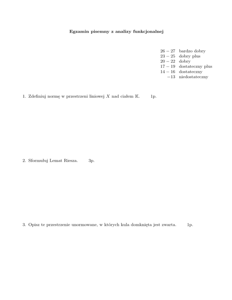 Egzamin pisemny z analizy funkcjonalnej 26 − 27 bardzo dobry 23