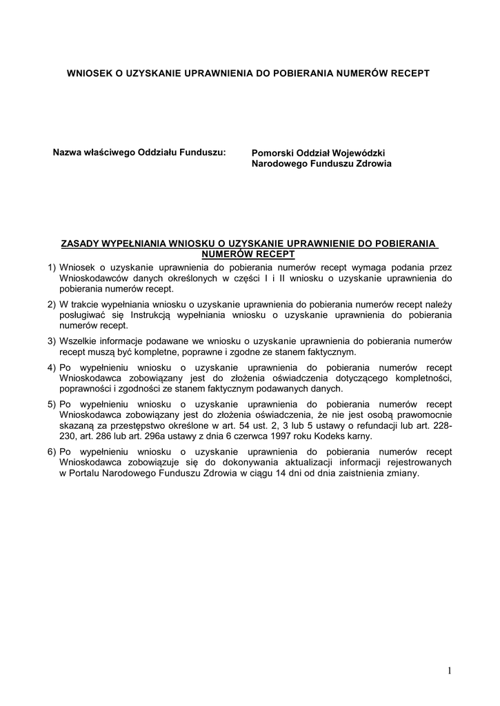 Pobierz wniosek - plik PDF - Pomorski Oddział Wojewódzki NFZ