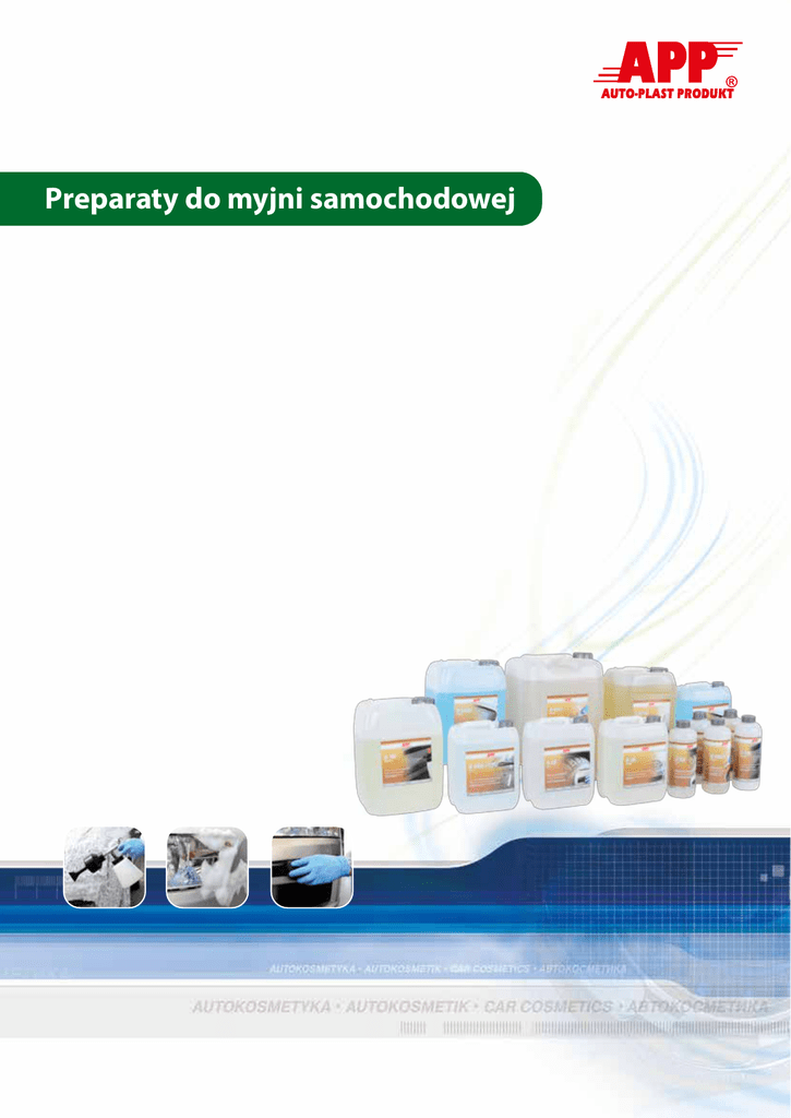 Preparaty do myjni samochodowej Oferta APP dla kosmetyki samochodowej dedykowana jest do czyszczenia, pielęgnacji i konserwacji pojazdów samochodowych. Nowa linia preparatów skierowana jest dla wszystkich profesjonalnie zajmujących się estetyką oraz codzienną pielęgnacją samochodów. Produkty dostępne w naszej ofercie pozwalają na kompleksowe czyszczenie i pielęgnację karoserii, szyb, opon lub nielakierowanych elementów z tworzyw sztucznych z zabrudzeń drogowych powstałych w czasie użytkowania pojazdów. Preparat wielozadaniowy do czyszczenia pojazdów APP M Multi Cleaner APP Nr 220011, 220012, 220013 APP M MULTI Cleaner to preparat przeznaczony do czyszczenia pojazdów samochodowych. Efektywnie usuwa zabrudzenia drogowe z karoserii, plandek oraz zabudów samochodów dostawczych. Nie pozostawia białych plam na elementach gumowych i plastikowych. Skutecznie myje pokrywę silnika od wewnątrz. Czyści i odtłuszcza silnik oraz wszelkie części mechaniczne. Preparat jest silnie alkaliczny. Nie zawiera rozpuszczalników. Preparat przeznaczony dla profesjonalnego użytku. Koncentrat: - mycie komory silnika i plandek 1:4 - 1:20 - mycie karoserii 1:20 - 1:50 - usuwania insektów 1:5 - 1:10 - mycie felg 1:5 - 1:10 - mycie elementów z tworzyw sztucznych 1:10 - 1:20 - mycie powierzchni warsztatowych 1:4 - 1: 20 APP Nr Opakowanie Pojemność Opakowanie zb. 220011 220012 220013 Butelka Kanister Kanister 1L 5L 20 L 1 szt. 1 szt. 1 szt. Preparat do czyszczenia karoserii pojazdów mechanicznych APP M Active Foam APP Nr 220021, 220022, 220023 APP M Active Foam to aktywna piana przeznaczona do bezdotykowego lub ręcznego mycia pojazdów mechanicznych takich jak motocykle, samochody osobowe, dostawcze, ciężarowe, autobusy. Dzięki mieszaninie środków powierzchniowo czynnych doskonale radzi sobie z typowymi zabrudzeniami komunikacyjnymi. Możliwość stosowania w różnych stężeniach pozwala na częste mycia karoserii. Charakteryzuje się wysoką skutecznością działania. Preparatu nie należy używać na nagrzane elementy, nie dopuścić do wyschnięcia. Koncentrat: - mycie komory silnika i plandek 1:4 - 1:20 - mycie karoserii 1:20 - 1:50 - mycie felg 1:5 - 1:10 APP Nr Opakowanie Pojemność Opakowanie zb. 220021 220022 220023 Butelka Kanister Kanister 1L 5L 10 L 1 szt. 1 szt. 1 szt. Wysokopieniacy preparat do czyszczenia samochodów APP M UNI Cleaner APP Nr 220031, 220032, 220033 APP M UNI Cleaner jest to wysokowydajny preparat do mycia karoserii pojazdów mechanicznych. Skutecznie usuwa zanieczyszczenia z powłok lakierowych pozostawiając błyszczącą powierzchnię. Rozpuszcza i usuwa zabrudzenia z elementów szklanych, tworzyw sztucznych oraz gumy. Środek przeznaczony do ręcznego mycia samochodów osobowych, terenowych, dostawczych itp. Koncentrat: - mycie karoserii 1:10 - 1:200 - mycie tapicerki 1:20 - 1:50 APP Nr Opakowanie Pojemność Opakowanie zb. 220031 220032 220033 Butelka Kanister Kanister 1L 5L 10 L 1 szt. 1 szt. 1 szt. Preparat do usuwania plam ze smoły i asfaltu APP M TAR Remover APP Nr 220041, 220042 APP M TAR Remover to preparat przeznaczony do usuwania śladów smoły i asfaltu a także żywicy z drzew, kleju oraz pozostałości po naklejkach z karoserii pojazdów. Preparat jest bezpieczny dla lakieru samochodowego. Usuwa także zatłuszczenia z zawiasów i zamków drzwi. Przed użyciem sprawdzić działanie preparatu w niewidocznym miejscu. Preparat przeznaczony do profesjonalnego użytku. Koncentrat: preparat gotowy do użycia APP Nr 220041 220042 Opakowanie Butelka Kanister Pojemność 1L 10 L Opakowanie zb. 1 szt. 1 szt. Preparat silikonowy do pielęgnacji opon i zewnętrznych tworzyw sztucznych APP M GM Care APP Nr 220051, 220052 APP M GM Care przeznaczony do pielęgnacji i konserwacji elementów gumowych oraz nielakierowanych elementów z tworzyw sztucznych. Dzięki swym wyjątkowym właściwością zdecydowanie poprawia ich estetykę . Preparat skutecznie zabezpiecza i chroni powierzchnię przed działaniem czynników atmosferycznych dając trwały oraz intensywny połysk. Koncentrat: preparat gotowy do użycia APP Nr 220051 220052 Opakowanie Butelka Kanister Pojemność 1L 5L Opakowanie zb. 1 szt. 1 szt. Preparat do mycia szyb APP M GLASS Cleaner APP Nr 220061, 220062 APP M GLASS Cleaner jest bardzo wydajnym preparatem przeznaczony do szybkiego i efektywnego czyszczenie szyb samochodowych, luster oraz innych powierzchni szklanych. Usuwa osady nikotynowe i smołowe, pozostałości po owadach oraz po silikonach ze środków konserwujących. Skutecznie usuwa zanieczyszczenia drogowe oraz tłuste plamy. Zdecydowanie poprawia widoczność podczas jazdy, nie wymaga dużych nakładów pracy, pozostawia lśniące pozbawione smug powierzchnie. Koncentrat: preparat gotowy do użycia APP Nr Opakowanie Pojemność Opakowanie zb. 220061 220062 Kanister Kanister 5L 10 L 1 szt. 1 szt. Preparat do osuszania i nabłyszczania karoserii pojazdów APP M Nano Hydro Wax APP Nr 220071, 220072 APP M Nano Hydro Wax to wysoce skuteczny i wydajny preparat do osuszania i nabłyszczania karoserii pojazdów. Nowoczesna formuła oparta o polimerowe nanocząsteczki powoduje szybsze wysychanie karoserii po umyciu, przywraca naturalny połysk oraz przy częstym stosowaniu chroni lakier przed szkodliwym działaniem czynników atmosferycznych. Preparat może być stosowany na wszystkich rodzajach powierzchni lakierowanych. Nie pozostawia przebarwień na tworzywach sztucznych i elementach gumowych. Można stosować na osuszony wcześniej lakier. APP Nr 220071 220072 Opakowanie Butelka Kanister Pojemność Opakowanie zb. 1L 5L 1 szt. 1 szt. Produkty dodatkowe Spryskiwacz ciśnieniowy z lancą AD 3000 3,00L APP Nr 251109 Spryskiwacz z pompką do zmywaczy 1L APP Nr 251100 Spryskiwacz do detergentów i wody 1L APP Nr 251106 Ściereczka pyłochłonna z mikrofibry MF Cloth - zielona (3szt.) APP Nr 080648 Jednorazowe rękawice nitrylowe APP Nr 090638 APP Twister Gun - pneumatyczny pistolet 