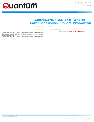 Quantum Qguar Sp. z o.o. ul. Walerego Sławka 3A Kraków ZebraCare, PB3, 3YR, Onsite Comprehensive, EP, ZM Promotion Producent: Zebra Dostępność: w magazynie polskim Cena netto: 3 509,37 PLN netto ZebraCare, PB3, 3YR, Onsite Comprehensive, EP, ZM Promotion ZebraCare, PB3, 3YR, Onsite Comprehensive, EP, ZM Promotion Z335-000-010-ZM ZebraCare, PB3, 3YR, Onsite Comprehensive, EP, ZM Promotion http://www.it-zakupy.pl wygenerowano przez program AptusShop