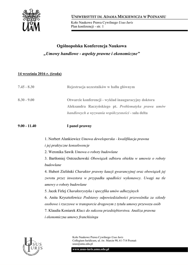 Ogólnopolska Konferencja Naukowa „Umowy handlowe