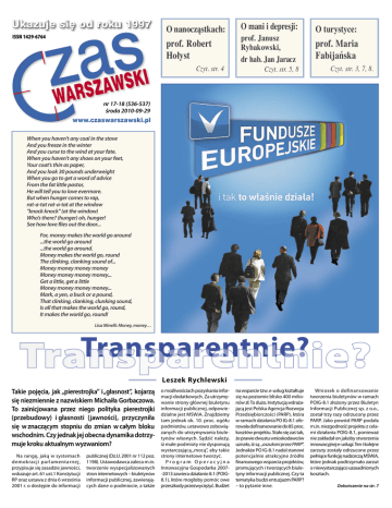 Ukazuje si´ od roku 1997 ISSN 1429-6764 O nanocząstkach: prof. Robert Hołyst Czyt. str. 4 O mani i depresji: prof. Janusz Rybakowski, dr hab. Jan Jaracz Czyt. str. 5, 8 O turystyce: prof. Maria Fabijańska Czyt. str. 3, 7, 8. nr 17-18 (536-537) środa 2010-09-29 www.czaswarszawski.pl When you haven’t any coal in the stove And you freeze in the winter And you curse to the wind at your fate. When you haven’t any shoes on your feet, Your coat’s thin as paper, And you look 30 pounds underweight When you go to get a word of advice From the fat little pastor, He will tell you to love evermore. But when hunger comes to rap, rat-a-tat rat-a-tat at the window "knock knock" (at the window) Who’s there? (hunger) oh, hunger! See how love flies out the door... For, money makes the world go around ...the world go around ...the world go around. Money makes the world go‚ round The clinking, clanking sound of... Money money money money Money money money money... Get a little, get a little Money money money money... Mark, a yen, a buck or a pound, That clinking, clanking, clunking sound, Is all that makes the world go‚ round, It makes the world go‚ round! Lisa Minelli: Money, money… Transparentnie? Transparentnie ? Transparentnie ? Transparentnie? Leszek Rychlewski Takie pojęcia, jak „pierestrojka” i „głasnost”, kojarzą się niezmiennie z nazwiskiem Michaiła Gorbaczowa. To zainicjowana przez niego polityka pierestrojki (przebudowy) i głasnosti (jawności), przyczyniła się w znaczącym stopniu do zmian w całym bloku wschodnim. Czy jednak jej obecna dynamika dotrzymuje kroku aktualnym wyzwaniom? Na rangę, jaką w systemach demokracji parlamentarnej, przypisuje się zasadzie jawności, wskazuje art. 61 ust.1 Konstytucji RP oraz ustawa z dnia 6 września 2001 r. o dostępie do informacji publicznej (Dz.U. 2001 nr 112 poz. 1198). Ustawodawca zaleca m.in. tworzenie wyspecjalizowanych stron internetowych – biuletynów informacji publicznej, zawierających dane o podmiocie, a także o możliwościach pozyskania informacji dodatkowych. Za utrzymywanie strony głównej biuletynu informacji publicznej, odpowiedzialne jest MSWiA. Znajdziemy tam jednak ok. 10. proc. ogółu podmiotów, ustawowo zobowiązanych do utrzymywania biuletynów własnych. Sądzić należy, iż małe podmioty nie dysponują wystarczającą „mocą”, aby takie strony internetowe tworzyć. Program Operacyjna Innowacyjna Gospodarka 2007-2013 zawiera działanie 8.1 (POIG8.1), które mogłoby pomóc owe przeszkody przezwyciężyć. Budżet na wsparcie tzw. e-usług kształtuje się na poziomie blisko 400 milionów zł. To dużo. Instytucją wdrażającą jest Polska Agencja Rozwoju Przedsiębiorczości (PARP), która w ramach działania PO IG-8.1 oferowała dofinansowanie do 85 proc. kosztów projektu. Stało się zaś tak, że prawie dwustu wnioskodawców uznało, iż są „oszukani przez PARP”. Jednakże PO IG-8.1 nadal stanowi potencjalnie atrakcyjne źródło finansowego wsparcia projektów, promujących i tworzących biuletyny informacji publicznej. Czy ta tematyka budzi entuzjazm PARP? – to pytanie inne. Wniosek o dofinansowanie tworzenia biuletynów w ramach POIG-8.1 złożony przez Biuletyn Informacji Publicznej sp. z o.o., został trzy razy odrzucony przez PARP. Jako powód PARP podała m.in. niezgodność projektu z celami działania POIG-8.1, ponieważ nie zakładał on jakoby stworzenia innowacyjnej e-usługi. Ten i kolejne zarzuty zostały odrzucone przez pełniące funkcję nadzorczą MSWiA, które jednak podtrzymało zarzut o niewystarczająco uzasadnionych kosztach. Dokończenie na str. 7 Fot. R. Krzyżewski środa 29 wrzesień 2010 r. Instytut Chemii Fizycznej PAN Poszukiwanie „świętego Graala” „Wiara ma znaczenie na samym początku, kiedy prowadzimy badania naukowe, bo musimy wierzyć, że ten kierunek, któremu często poświęcamy 30–40 lat naszego życia, to jest właśnie to, co może nie tyle przyniesie nam sławę, ale przyniesie nam odpowiedzi na pytania, które stawiamy”. Prof. Robert Hołyst w rozmowie z red. M. Modrzejewskim w Sygnałach Dnia, 11 październik 2008 r. Media niezbyt często zaglądają do Instytutu Chemii Fizycznej PAN. Dziwić się specjalnie nie należy, bowiem dzieją się tam rzeczy dla przeciętnego „zjadacza chleba” – niepojęte.. Ludzie nie dysponują zmysłami pozwalającymi np. prawidłowo określić zmiany lepkości. W rezultacie często mylimy lepkość z gęstością. Na przykład szampon składa się w 95 proc. z wody i ma zbliżoną do niej gęstość, ale to z powodu dużej lepkości rozlewa się powoli na dłoni. Lepkość badał już Newton. Jednakże zagadka pozostawała nierozwiązana. Prowadzone w latach 50. ub.w. eksperymenty, ujawniły zaskakujący fakt. Okazało się, że obiekty kilka miliardów razy mniejsze mogą odczuwać lepkość dziesiątki, a nawet setki tysięcy razy mniejszą od obiektu makroskopowego. Na pytanie o przyczynę tak dramatycznej zmiany lepkości, długo nie potrafiono odpowiedzieć. Naukowcy z Instytutu Chemii Fizycznej PAN pod kierunkiem prof. Roberta Hołysta wykazali, że w każdym układzie hydrodynamicznym istnieje fundamentalna skala długości, przy której następuje przejście od makrolepkości do nanolepkości. Wielkość tej skali zależy od rozmiarów obiektów obecnych w płynie. Szczególnie ciekawy jest fakt, że zmniejszenie rozmiaru płynącego obiektu o 10 nanometrów, może się wiązać ze zmianą lepkości aż o 5-6 rzędów wielkości. Eksperyment prowadzono przez pięć lat, śledząc w ognisku lasera zachowanie pojedynczych cząsteczek białek w płynach o objętości mikrometrów sześciennych. Prof. Hołyst skomentował ich wynik w słowach: – Nauka wciąż słabo rozumie zjawiska zachodzące w tak małych skalach. Jeśli jednak chcemy budować nanomaszyny, wypadałoby, abyśmy jak najle- piej poznali zjawiska typowe dla świata, w którym mają one działać. Nanorobot