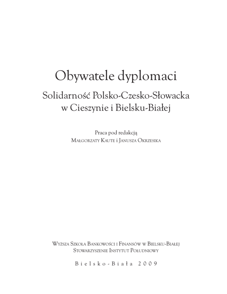 Obywatele dyplomaci Solidarnośæ Polsko-Czesko-S³owacka w Cieszynie i Bielsku-Bia³ej Praca pod redakcj¹ MA£GORZATY KAUTE i JANUSZA OKRZESIKA WY¯SZA SZKO£A BANKOWOŚCI I FINANSÓW W BIELSKU-BIA£EJ STOWARZYSZENIE INSTYTUT PO£UDNIOWY B i e l s k o - B i a ³ a 2 0 0 9 MIROS£AWA PINDÓR Od przestrzeni absurdu do przestrzeni wolności. XX lat Miêdzynarodowego Festiwalu Teatralnego „Na Granicy”/„Bez granic” Od dwudziestu lat bezsprzecznie najwa¿niejsz¹ i najbardziej spektakularn¹ formê transgranicznej aktywności teatralnej na ca³ym, licz¹cym 785 km, polsko-czeskim pograniczu stanowi „³ami¹cy” wszelkie granice Miêdzynarodowy Festiwal Teatralny „Bez granic” / Mezinarodní divadelní festival „Bez hranic” (do maja 2003 roku Miêdzynarodowy Festiwal Teatralny „Na Granicy”/ Mezinarodní divadelní festival „Na hranici”). Zainicjowany w maju 1990 roku w Cieszynie i Czeskim Cieszynie przez cieszyñskie środowisko Solidarności Polsko-Czechos³owackiej (nadal, z drobn¹ korekt¹ w nazwie, g³ównego organizatora przedsiêwziêcia1), kontynuowany corocznie w maju (z nielicznymi edycjami 1 Do wspó³organizatorów Festiwalu niezmiennie przynale¿¹: Cieszyñski Ośrodek Kultury – Dom Narodowy (od pierwszej edycji), Městské kulturní středisko / Kulturní a společenské středisko „Střelnice” (od drugiej edycji). W gronie organizatorów znajduje siê tak¿e Teatr im. A. Mickiewicza. Do instytucji bezpośrednio zaanga¿owanych w organizacjê Festiwalu okresowo przynale¿a³y: Těšínské divadlo, Teatr Polski z Bielska-Bia³ej, nadto Filia Uniwersytetu Śl¹skiego w Cieszynie oraz stowarzyszenie Občanské sdružení „Člověk na hranici. Dyrektorzy wymienionych instytucji: Ladislav Slíva (1991–1996), Roman Rozbroj (1997–1999) – TD, Jerzy Herma (1990–1998) – COK – DN, Gertruda Chowanioková (1991–1999) – MKS / KaSS „Střelnice”, Marek Gaj (1992–1995) – TP oraz rzecznicy SPCz Jerzy Kronhold (1990–1991), J. Mátl (1990) „zawiadywali” teatralnym przedsiêwziêciem wspólnie, jako tzw. wieloosobowy Dyrektoriat Festiwalu. W 1996 roku ustali³ siê obowi¹zuj¹cy przez kilka lat schemat: Dyrektoriat tworzyli pospo³u dyrektor TD oraz rzecznik SPCzS. Od października 1996 do maja 2005 roku dyrektorem Festiwalu „Na Granicy” ze strony polskiej by³ Marian Dembiniok, od roku 2006 Dyrektorem Generalnym Festiwalu jest G. Chowanioková (nadto w 2008 roku dyrektorem Festiwalu by³ R. Rozbrój). Dodaæ nale¿y, ¿e w 2001 roku w gronie wspó³organizatorów Festiwalu znalaz³ siê Wêgierski Instytut Kultury. 2 W dniu 15 lutego 1990 roku w Domu Narodowym w Cieszynie, w ramach cyklicznej imprezy Forum Myśli Politycznej, odby³o siê spotkanie przedstawicieli czeskocieszyñskiego Forum Obywatelskiego (m.in. Jakub Mátl, Gertruda Chowanioková) oraz reprezentantów Sekcji Polskiej OF (m.in. Jan Rusnok) z mieszkañcami Cieszyna. Podczas dyskusji pojawi³y siê rzeczowe argumenty, opowiadaj¹ce siê za niezbêdności¹ stworzenia nowego programu wspó³istnienia miast i narodów na polsko-czeskim pograniczu, w tym wspó³pracy kulturalnej. 17 lutego 1990 roku w Ustroniu mia³o miejsce robocze spotkanie cieszyñskiej opcji Solidarności Polsko-Czechos³owackiej z polskimi parlamentarzystami z regionu Podbeskidzia (senatorem RP Maciejem Krzanowskim, pos³em Januszem Okrzesikiem) oraz pos³ami do Czeskiej Rady Narodowej. Podczas spotkania oświadczono m.in., i¿ oficjalna wymiana kulturalna „powinna byæ uzupe³niona dzia³aniami środowisk niezale¿nych, dzia³aniami wolnymi od ideologicznych nacisków, prezentuj¹cymi dokonania ró¿norakich krêgów artystycznych” (zob. K. Kaszper, „G³os Ziemi Cieszyñskiej” 1994, nr 29), nadto – zrodzi³ siê projekt dorocznego interdyscyplinarnego Festiwalu Wzajemności, obejmuj¹cego ca³y Śl¹sk Cieszyñski w jego histo- 74 MIROS£AWA PINDÓR październikowymi) stanowi oczywist¹ konsekwencjê podejmowanych u zarania dziewi¹tej dekady XX wieku wspólnych polsko-czeskich solidarnościowych formalnych spotkañ i rozmów2, poczynañ polityczno-spo³eczno-kulturalnych3 oraz poprzedzaj¹cych je manifestacji politycznych4 i protestów ekologicznych5. Na egzystencji Festiwalu zawa¿y³y, w sensie pozytywnym, polsko-czeskie traktaty i umowy bilateralne podpisywane w latach 1990 – 2003 na szczeblach rz¹dowym, regionalnym i lokalnym, zawieraj¹ce deklaracje wspierania inicjatyw i dzia³añ podejmowanych przez organizacje, stowarzyszenia, osoby indywidualne na rzecz wzajemnego poznania, zbli¿enia i bezpośredniej wspó³pracy z organizacjami, stowarzyszeniami i osobami indywidualnymi s¹siaduj¹cego pañstwa. Nale¿y tutaj przywo³aæ: Umowê o wspó³pracy kulturalnej i naukowej z 16 września 1991 roku, Uk³ad o dobrym s¹siedztwie, solidarności i przyjacielskiej wspó³pracy z 6 października 1991 roku, Umowê o bezwizowym ruchu miêdzy CSRF a RP z 2 maja 1991 roku6 i Konwencjê o ma³ym ruchu granicznym z 17 stycznia roku 19957, Porozumienie o wspó³pracy transgranicznej z 18 września 1994 roku, Umowê o wspó³pracy miêdzy miastami Cieszyn i Český Tĕšín z 14 czerwca 1996 roku8, Umowê o wspó³pracy regionalnej „Euroregion rycznych granicach. W programie Festiwalu mia³ siê m.in. znaleźæ przegl¹d sztuk Václava Havla. Strony rozmów: cieszyñska – Občanské fórum i ustroñska – Solidarnośæ Polsko-Czechos³owacka spotka³y siê te¿ w marcu w Cieszyñskim Ośrodku Kultury – Domu Narodowym, gdzie ich przedstawiciele: Jakub Mátl (OF) i Jerzy Kronhold (SPCz), przy wspó³udziale Jerzego Hermy (COK – DN) przyjêli zamys³ wspólnego urz¹dzenia w miastach granicznych / mieście podzielonym Polsko-Czesko-S³owackiego festiwalu teatralnego. 3 W dniach od 12 do 16 września 1990 roku odbywa³ siê w obu Cieszynach transgraniczny Festiwal Solidarności Polsko-Czechos³owackiej/ Festival Polsko-československé solidarity. W programie Festiwalu, maj¹cego s³u
