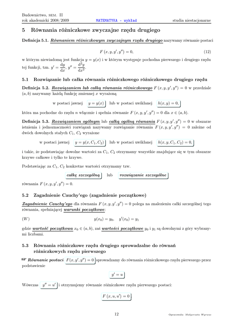 5 Równania różniczkowe zwyczajne rzędu drugiego