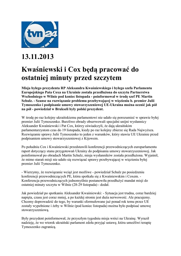 13.11.2013 Kwaśniewski i Cox będą pracować do